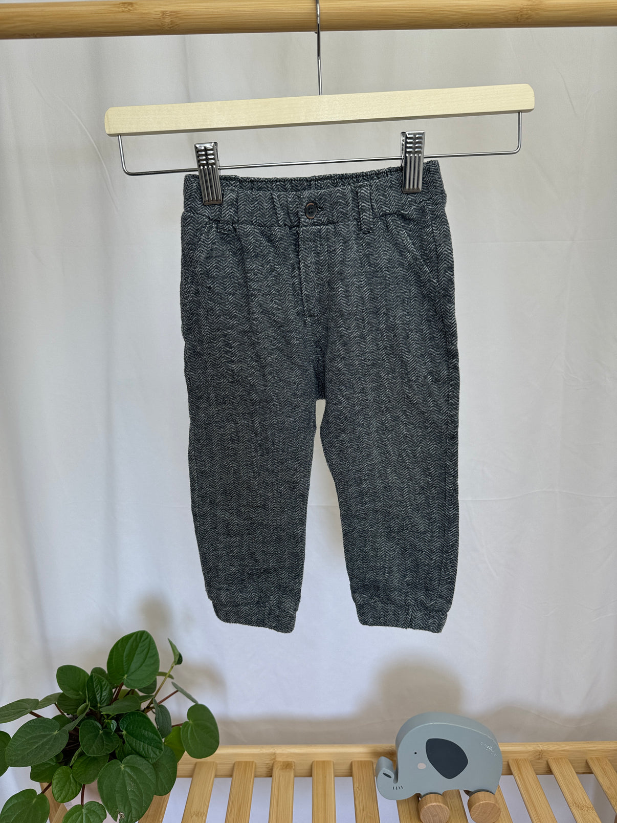 Elegantní kalhoty Lindex v jemném vzoru rybí kosti ve velikosti 80. Tyto stylové kalhoty jsou skvělou volbou na slavnostní příležitosti i každodenní nošení, díky jejich pohodlnému střihu s elastickým pasem a praktickým knoflíkem. Skvěle se hodí pro malého gentlemana, který se chce cítit pohodlně a zároveň elegantně.