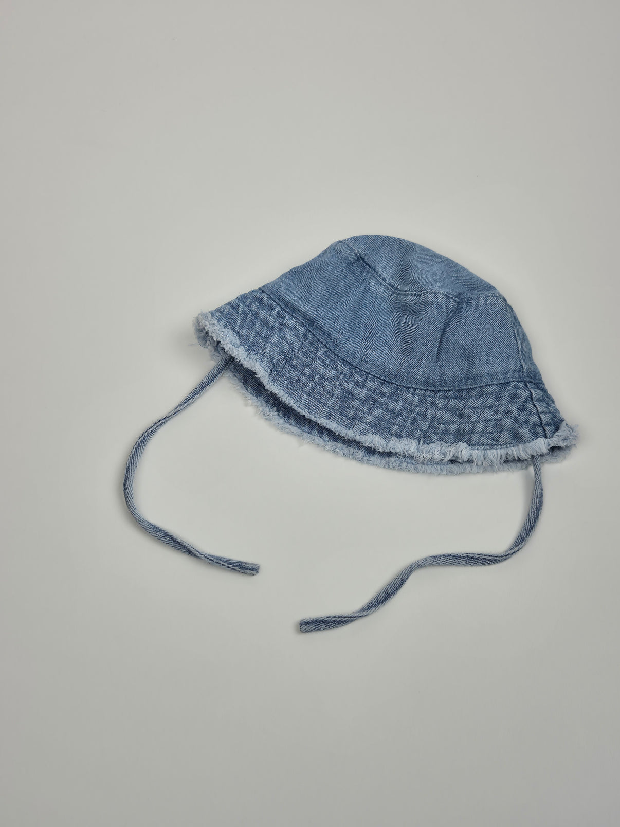 Lehký klobouček z jemného denimu v klasické světle modré džínové barvě. Okraj je zakončený jemným třepením, které mu dodává hravý a ležérní vzhled. Praktické zavazování pod bradou pomůže, aby klobouček dobře držel i při pohybu. Ideální volba na jarní a letní dny – na procházky, hřiště i dovolenou. Vhodný pro holčičku i chlapečka.