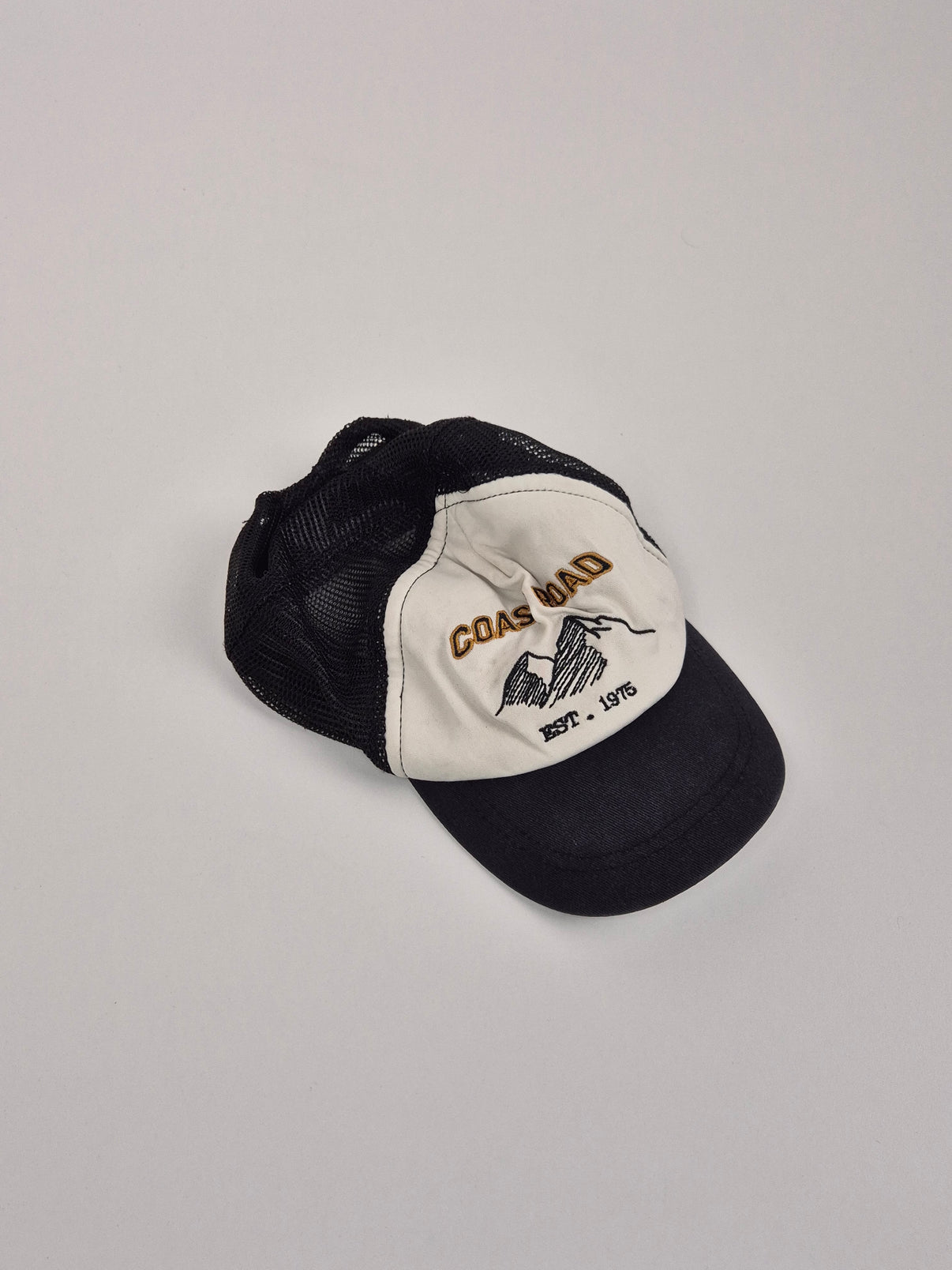 Dětská kšiltovka Zara v nadčasovém trucker stylu je skvělým doplňkem na jaro a léto. Kombinace krémově bílé přední části s černým kšiltem a síťovanou zadní částí působí stylově a lehce sportovně. Výrazná výšivka s horským motivem a nápisem Coast Road dodává kšiltovce moderní outdoorový nádech.