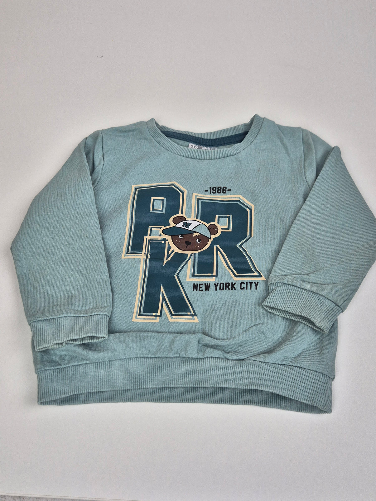 Pohodlná chlapecká mikina Pepco ve velikosti 86 v jemně modré barvě. Na přední straně zdobí veselý potisk s medvídkem a nápisem New York City. Mikina má žebrované lemy na rukávech i spodním okraji, což zajišťuje, že pěkně drží tvar a chrání před chladem. Ideální kousek na běžné nošení nebo na „lítání“ venku.