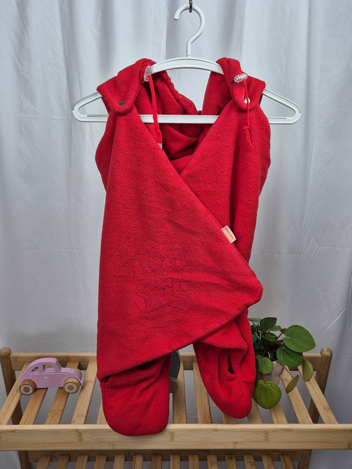 Fusak do autosedačky Emitex v zářivě červené barvě je praktickým pomocníkem pro chladnější dny. Měkký fleecový materiál příjemně zahřeje a zároveň zajišťuje pohodlí při cestování. Snadné zavinutí díky překladu na suchý zip a zapínání na patentky usnadňuje manipulaci s miminkem. Integrovaná kapuce i nožičky udrží teplo, a to vše v roztomilém designu s vyšitou postavičkou medvídka.