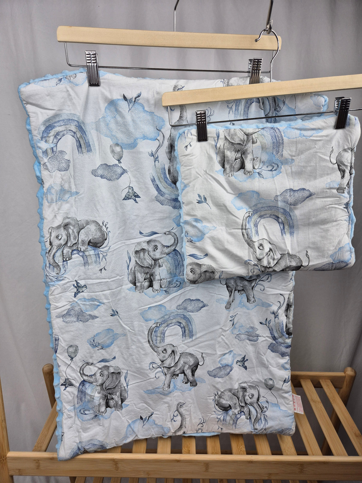 Kouzelný set peřinky a polštářku s roztomilým motivem slůňátek a duhových obláčků potěší každého malého snílka. Jemná kombinace bílé a pastelově modré barvy působí uklidňujícím dojmem, zatímco měkoučký minky materiál na rubové straně zajistí maximální pohodlí při spánku nebo odpočinku. Ideální do postýlky, kočárku i na cesty. Tento set je jako stvořený pro malé kluky, ale radost udělá i milovnicím zvířátek.