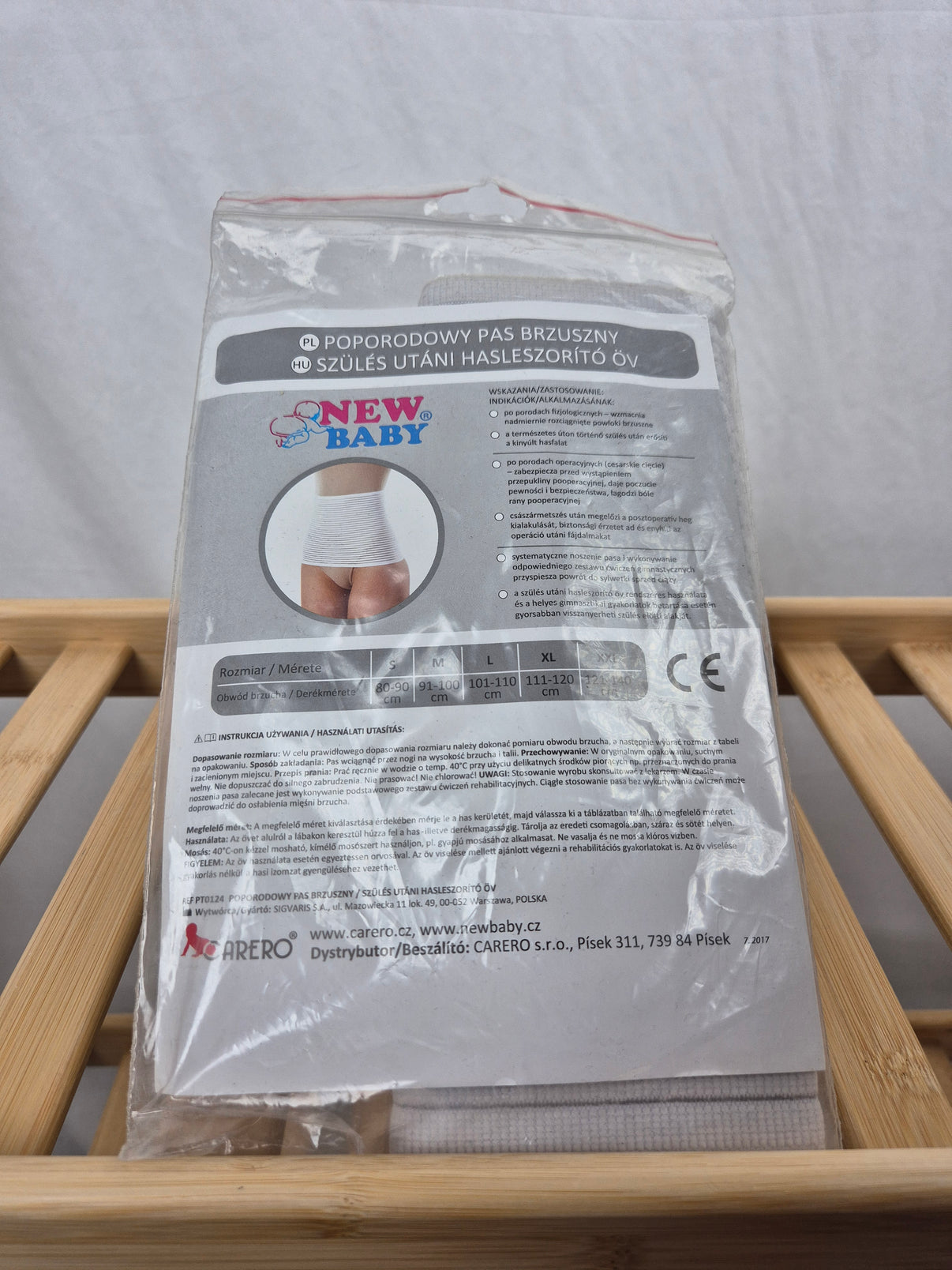 Poporodní stahovací pás značky New Baby ve velikosti L (101–110 cm). Praktický pomocník pro zpevnění bříška a zad po porodu, který poskytuje pohodlnou oporu při každodenním nošení.