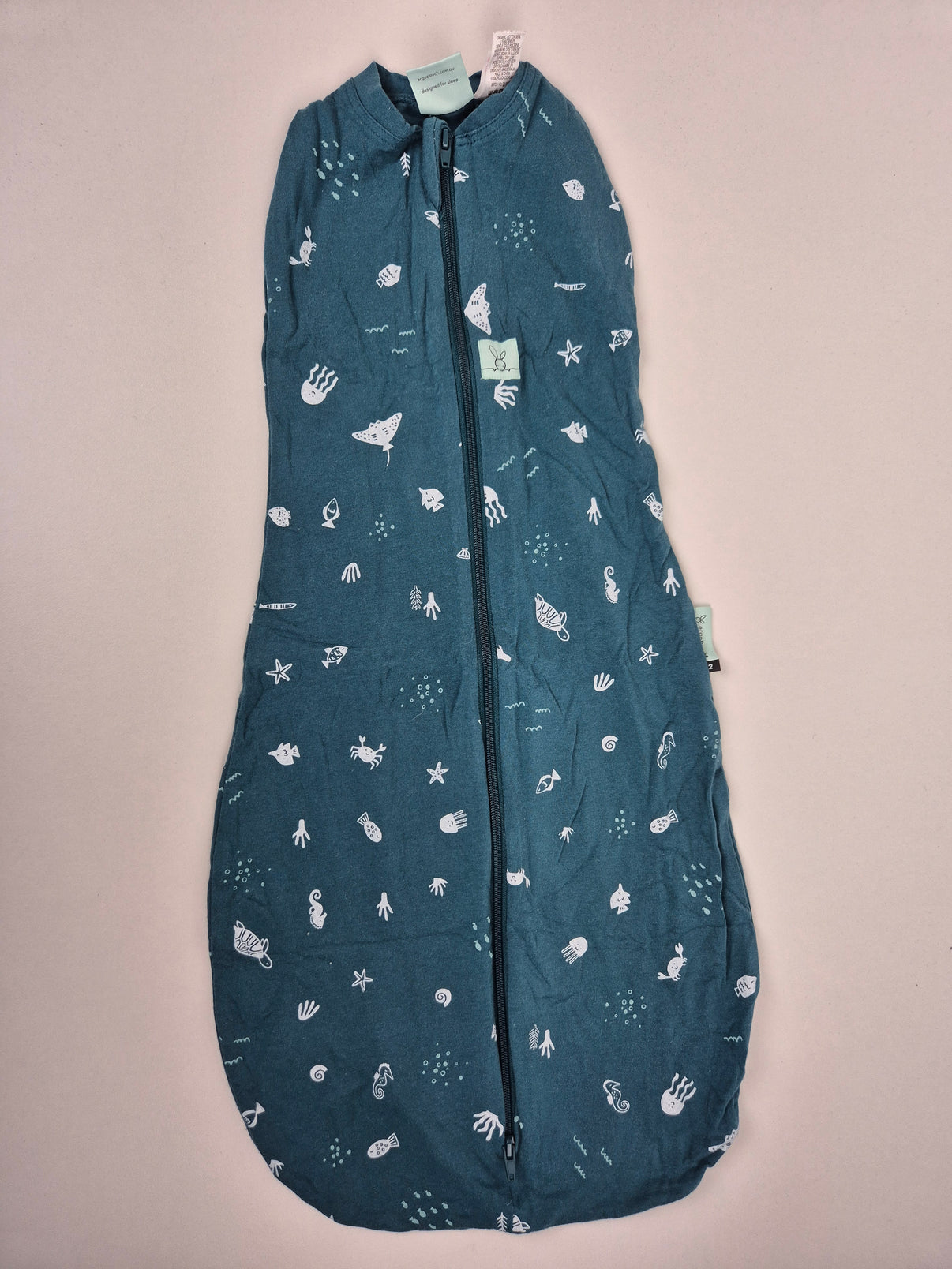 Stylový a praktický spací pytel značky ErgoPouch ve velikosti 62/68 je skvělou volbou pro klidné a bezpečné spaní miminka. Tmavě petrolejová barva s jemným mořským motivem (rybičky, medúzy, hvězdice) působí moderně a unisexově. Vyrobený z prodyšného a na dotek velmi příjemného materiálu, který poskytuje ideální teplotní komfort. Přední zip usnadňuje přebalování i manipulaci během spánku. Vhodný pro holčičky i chlapečky.