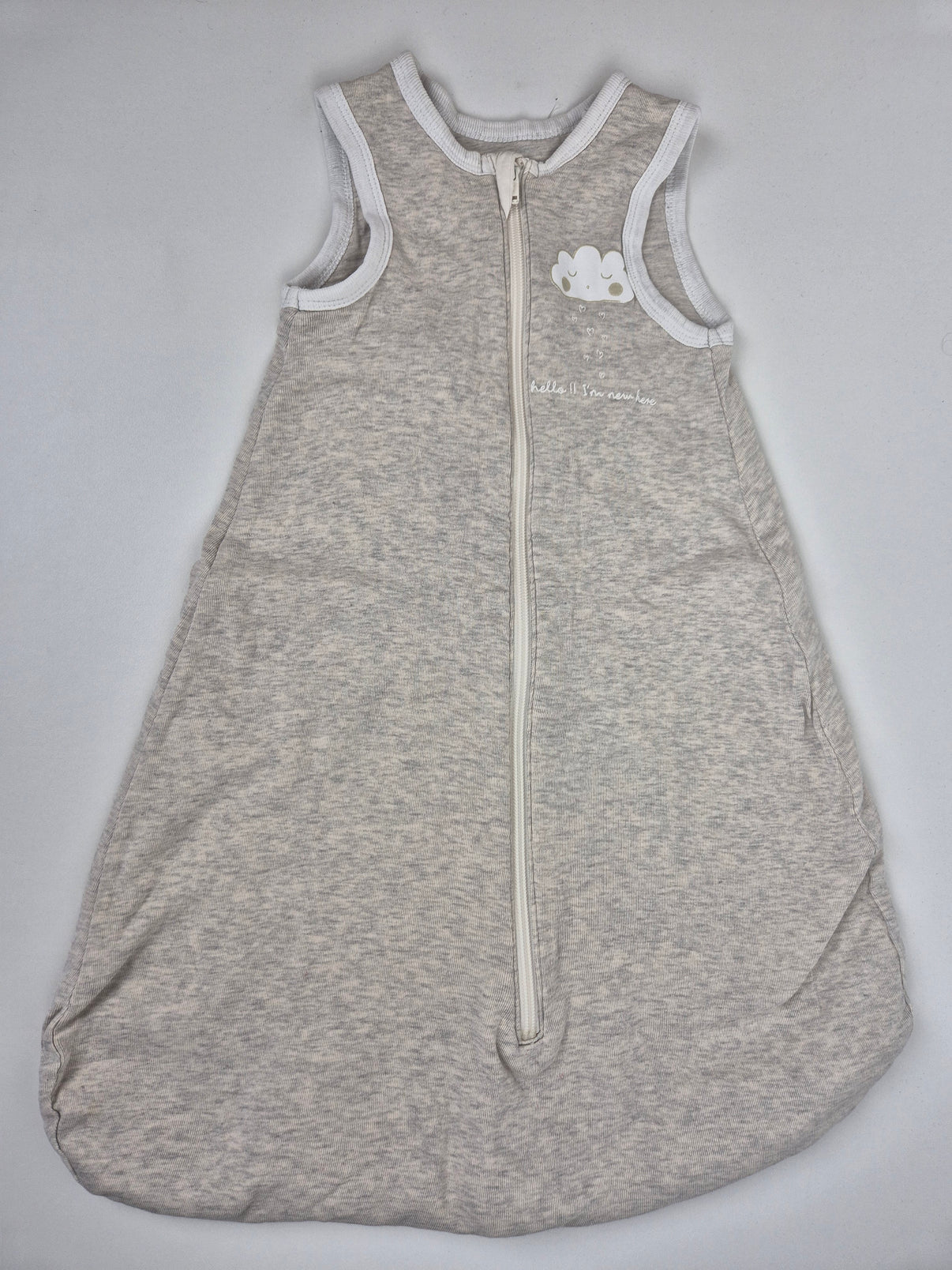 Lehoučký spací pytel od značky Lupilu v příjemném světle béžovém melíru je ideální volbou pro klidné spaní těch nejmenších. Díky zipu po celé délce se snadno obléká a přebaluje. Zdobený jemným potiskem mráčku s nápisem „hello! I'm new here“. Neutrální design vhodný pro holčičku i chlapečka.