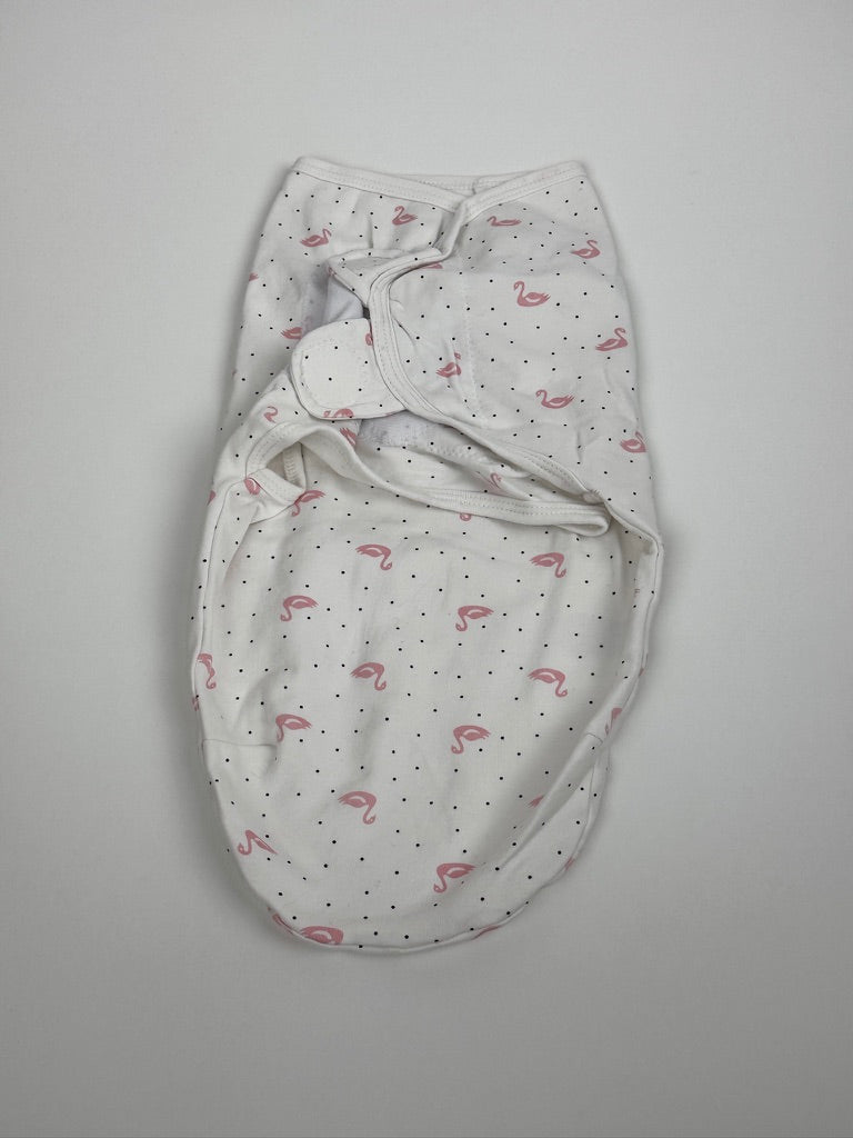 Zavinovačka AGLDI v jemné bílé barvě s růžovými plameňáky a drobnými černými puntíky je skvělým pomocníkem pro pohodlné zavinutí novorozence. Měkký a poddajný materiál příjemně obepne tělíčko a díky suchému zipu drží pevně na místě, takže miminko zůstane klidné a v bezpečí. Velikost 56/62 je ideální pro první týdny života. Design potěší především pro holčičky, ať už doma, na návštěvě nebo na cestách. Skvělé řešení pro spánek i odpočinek během dne.