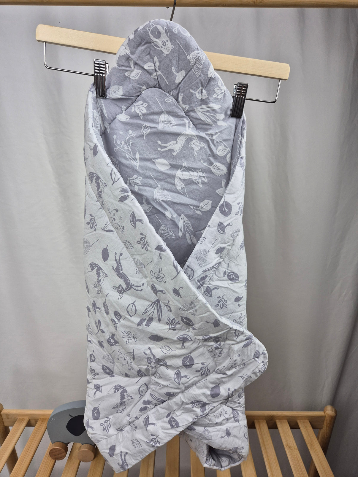 Měkoučká zavinovačka v přírodních tónech potěší každého malého objevitele i objevitelku. Jemná šedobílá barva s potiskem lesních zvířátek, houbiček a lístků navozuje klidnou, harmonickou atmosféru – ideální na doma i na cesty. Vnější i vnitřní materiál působí příjemně na dotek, takže miminko bude krásně v teple a pohodlí. Skvělá volba pro klidný spánek i chvíle mazlení. Hodí se pro holčičky i chlapečky.