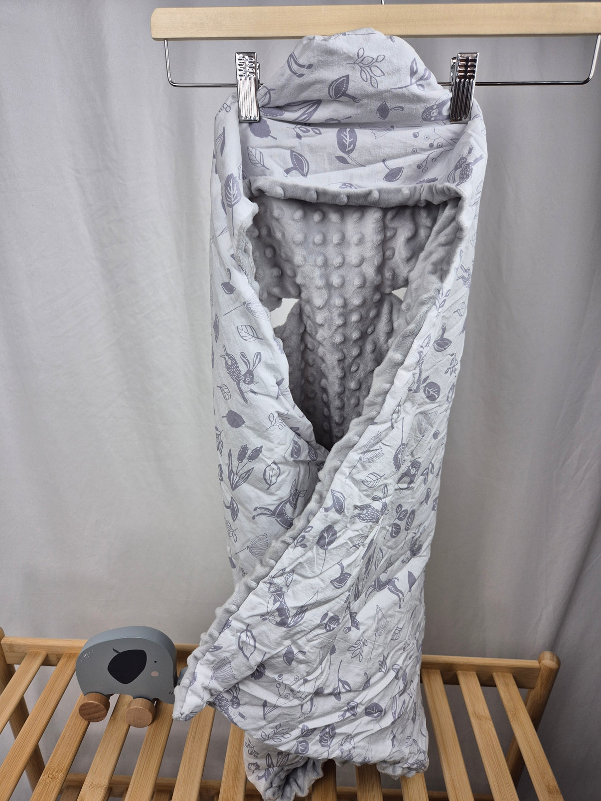 Praktická a krásně měkká zavinovačka do autosedačky v jemné šedé barvě s lesním motivem – ideální pro každé miminko na cestách. Díky univerzálním otvorům na zadní straně se snadno přizpůsobí většině autosedaček s tří- i pětibodovým pásem. Uvnitř hřeje měkoučký minky materiál, který zaručí pohodlí i v chladnějších dnech. Stylový potisk s lístečky, houbičkami a zvířátky potěší jak holčičky, tak kluky. Skvělý pomocník pro bezpečné a pohodlné cestování.