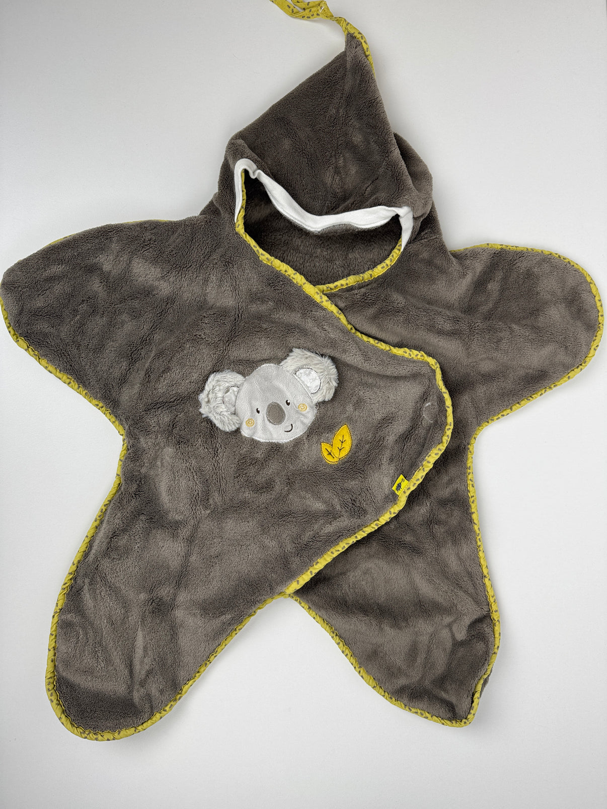 Měkoučká zavinovačka Baby Fehn ve tvaru hvězdy s roztomilou výšivkou koaly. Vyrobená z hebkého plyšového materiálu, který krásně hřeje a je příjemný na dotek. Vnitřní podšívka je z jemné bavlny, takže se miminko bude cítit v teple i pohodlí. Zavinovačka má praktickou kapuci a díky svému tvaru se snadno přizpůsobí – ideální do kočárku, autosedačky i na doma.
