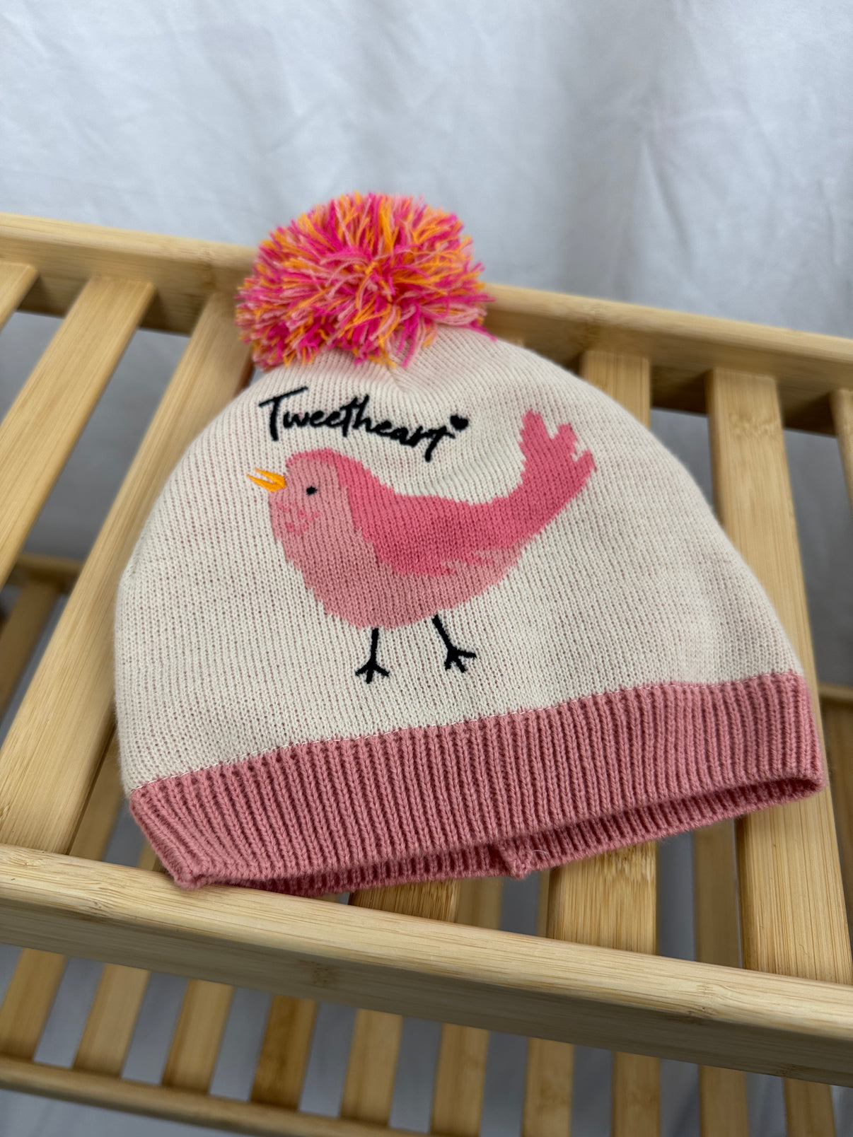 Roztomilá zimní čepice Lupilu ve velikosti 98/128, která krásně zahřeje a zároveň potěší svým hravým designem. Kombinace krémové a růžové barvy působí něžně, na přední straně je milý růžový ptáček s nápisem Tweetheart a celý vzhled doplňuje veselá vícebarevná bambule. Čepice je měkká, příjemná a ideální na chladné dny – perfektní pro holčičku.
