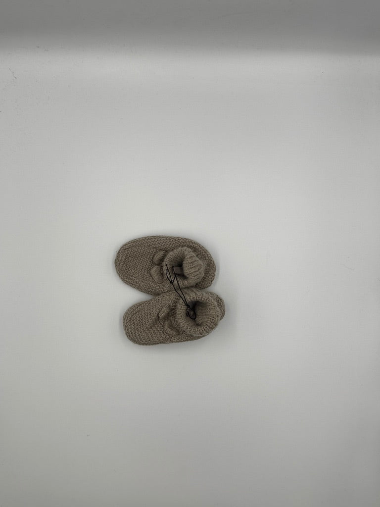 Capáčky jsou v jemném béžovo-pískovém odstínu, který působí velmi přirozeně a snadno se kombinuje s dalšími barvami dětského oblečení. Jsou vyrobené z měkkého pleteného materiálu, který je příjemný na dotek a pomáhá udržet nožičky v teple. U kotníku mají pružný lem a malou šňůrku na zavázání, díky které capáčky dobře drží na nožičkách.