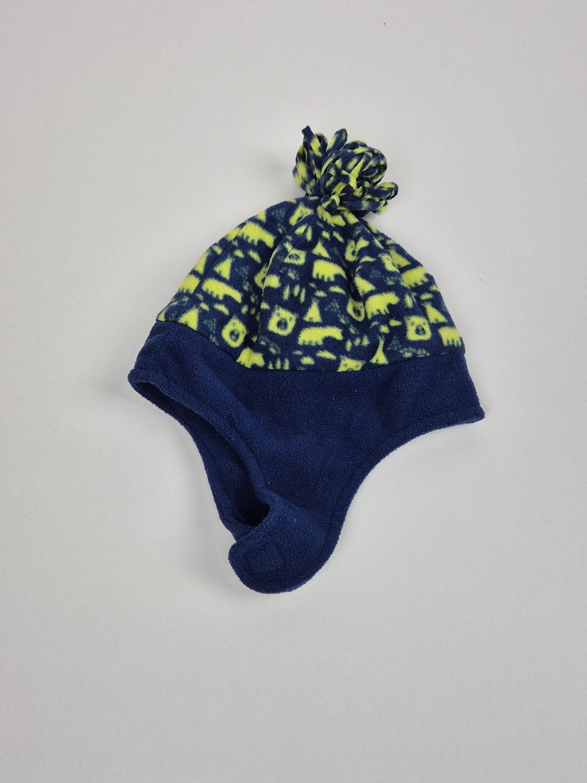 Hřejivá zimní čepice Pepco ve velikosti 86, ideální do opravdového zimního počasí. Je z měkkého fleecu v tmavě modré barvě a horní část zdobí výrazný neonově žluto-modrý vzor se zábavnou bambulí z proužků. Střih s delšími bočnicemi krásně chrání ouška a dobře drží na hlavičce.
