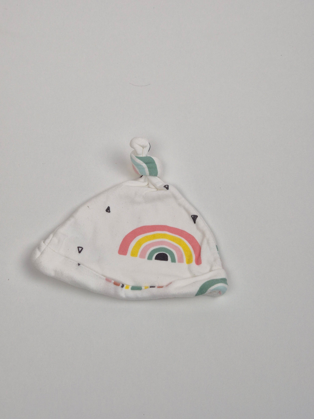 Roztomilá kojenecká čepička F&F v čistě smetanově bílé barvě s veselým duhovým motivem v jemných pastelových tónech. Měkký bavlněný materiál je příjemný na dotek a vhodný i pro citlivou pokožku miminka. Ohnutý lem dobře drží na hlavičce a uzlík na vršku dodává čepičce hravý, roztomilý vzhled. Ideální na každodenní nošení doma i ven do kočárku.
