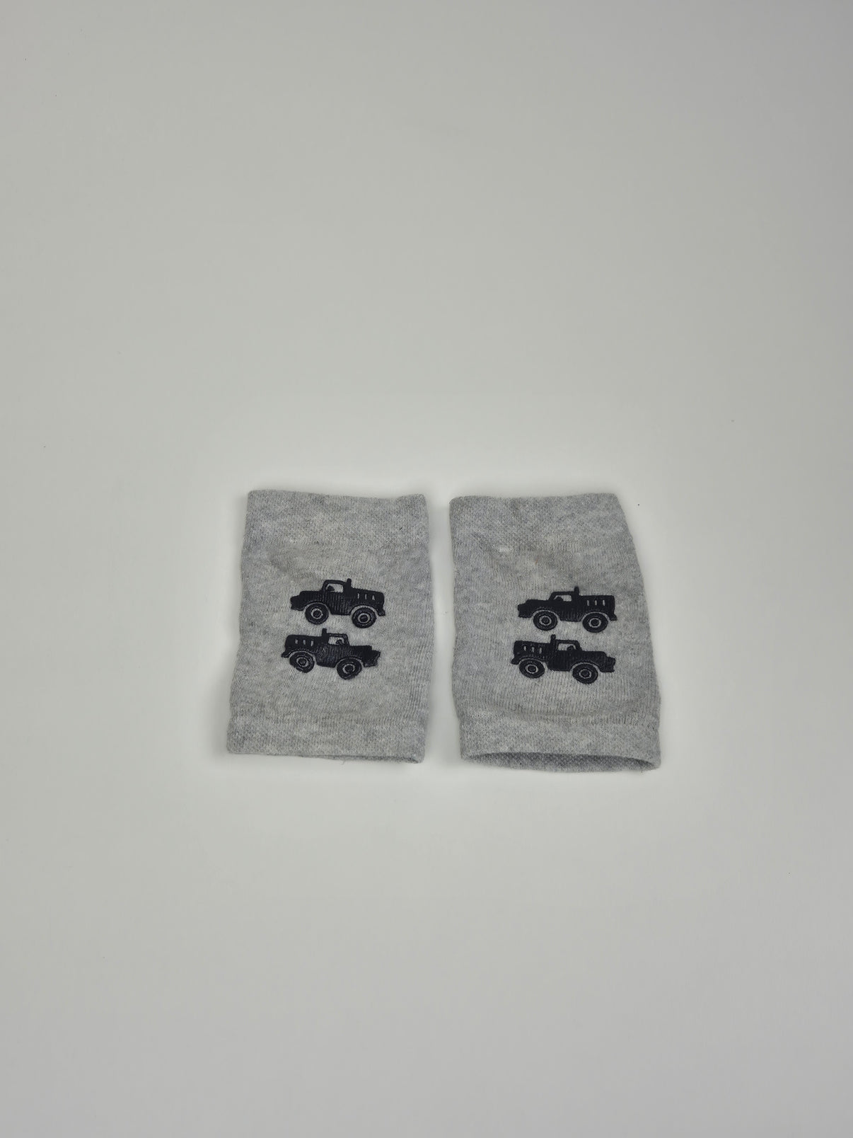 Šedé dětské nákoleníky s motivem autíček, vhodné pro batolata, která začínají lézt. Chrání kolínka a zároveň neomezují pohyb. Elastické, příjemný materiál.