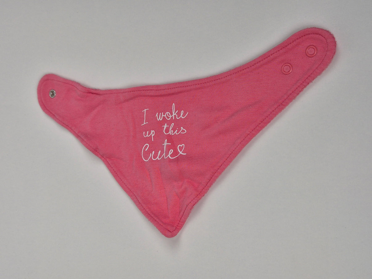 Roztomilý růžový slintáček s potiskem „I woke up this cute♡“ je ideální doplněk pro každé malé miminko.