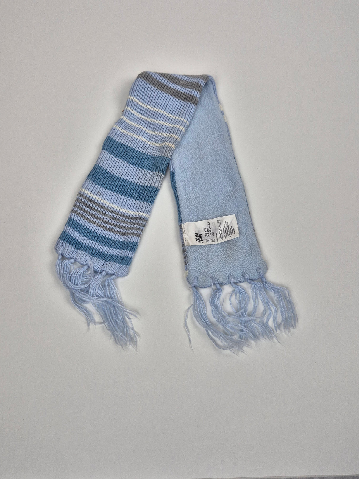 Lehoučká šála H&M v jemných odstínech světle modré, šedé a bílé krásně zahřeje a zároveň dodá zimnímu outfitu hravý tón. Pletený proužkovaný design doplňuje měkká fleecová podšívka, takže je příjemná na krku i pro nejmenší citlivky. Třásně na koncích dodávají šále roztomilý dětský vzhled. Díky barvám se hodí hlavně pro kluka, ale klidně i jako unisex kousek.