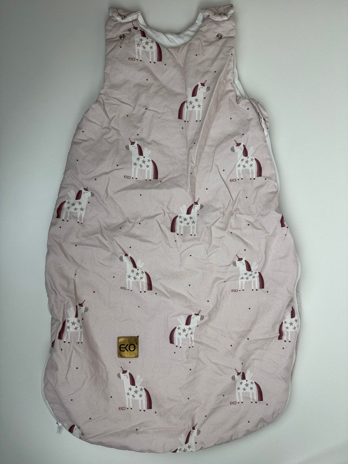 Dětský spací pytel EKO v jemném starorůžovém odstínu s roztomilým potiskem jednorožců. Pytel je krásně měkký a příjemný na dotek, ideální pro klidný a pohodlný spánek miminka. Zapínání na zip po straně usnadňuje manipulaci při uspávání i přebalování, druky u ramínek pomáhají s dobrým usazením pytle. Neutrálně laděný design je vhodný jak pro holčičku, tak i pro kluka.