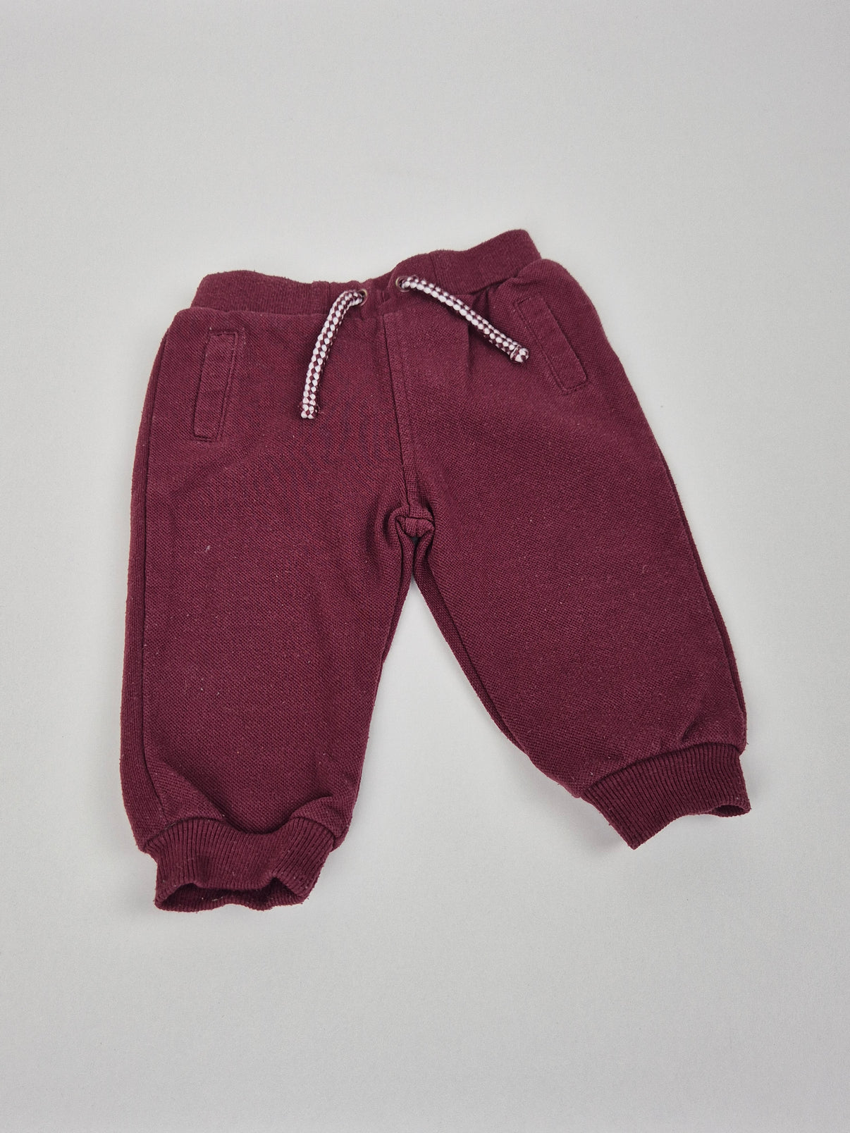 Pohodlné bavlněné tepláky F&F ve velikosti 74 v krásném vínovém odstínu. Měkký a prodyšný materiál, elastický pas se šňůrkou a žebrované lemy pro maximální komfort při nošení.