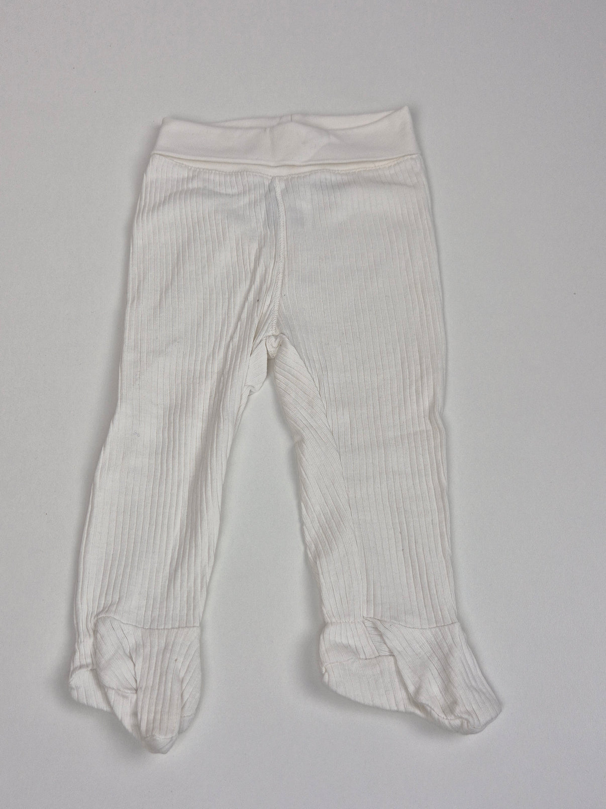 Měkké žebrované polodupačky H&M v krémově bílé barvě. Příjemný bavlněný materiál a široký pružný pas zajišťují pohodlí pro každodenní nošení. Zabudované ťapičky udrží nožičky miminka v teple.