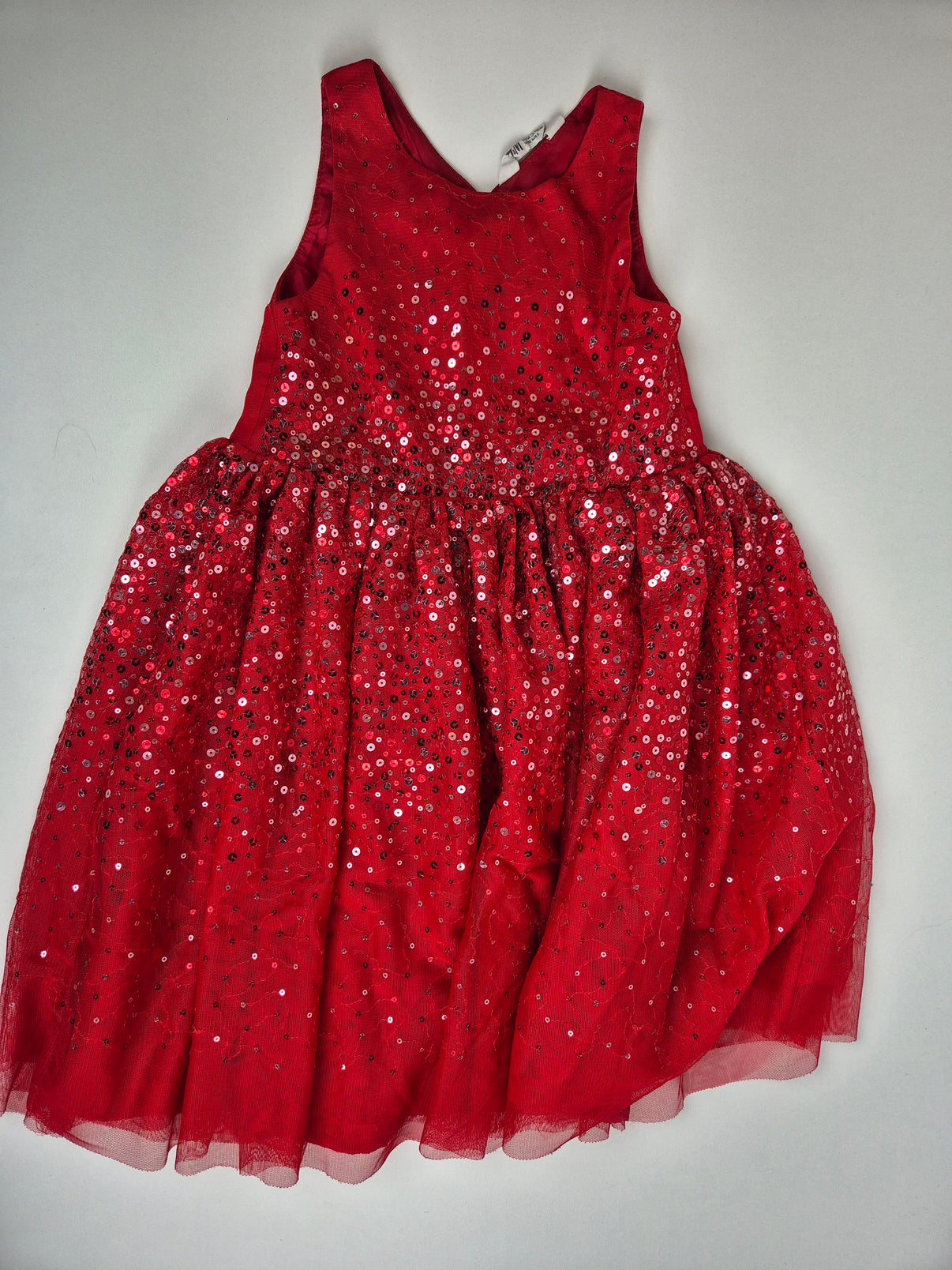Krásné slavnostní šaty značky H&M v výrazné sytě červené barvě, které na první pohled zaujmou jemným třpytem flitrů. Vrchní díl i sukně jsou zdobené drobnými lesklými detaily, spodní část je doplněná lehkou tylovou vrstvou, díky které šaty krásně drží tvar a působí opravdu slavnostně. Pohodlný střih bez rukávů se dobře obléká a neomezuje v pohybu. Ideální volba na oslavy, besídky, svatby nebo jiné výjimečné příležitosti.