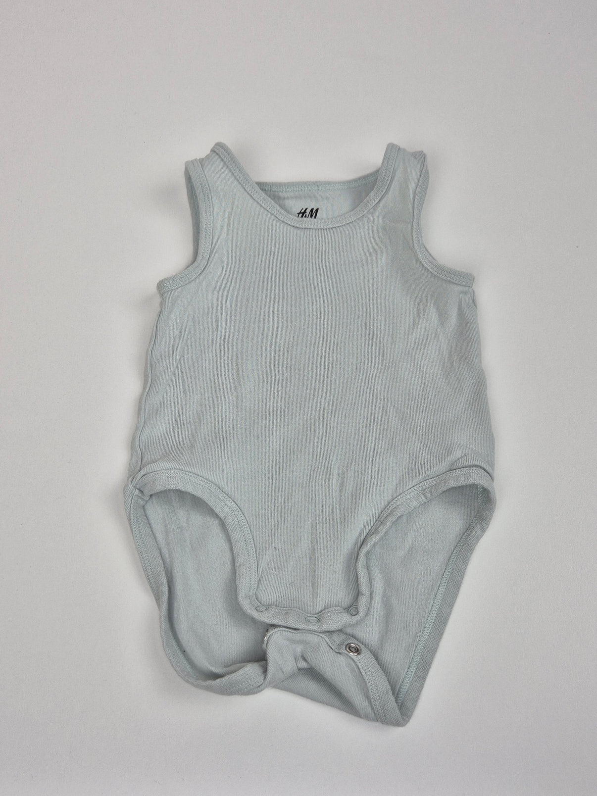 Jednoduché a praktické tílkové body H&M ve světle mentolové barvě. Lehký, příjemný bavlněný materiál je ideální na léto nebo jako spodní vrstva. Snadné zapínání mezi nožičkami a pohodlný střih z něj dělají skvělý základní kousek pro každodenní nošení.