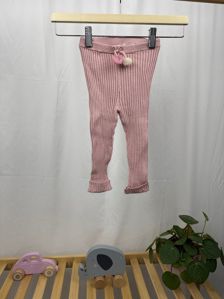 Pohodlné a hřejivé legíny v jemné růžové barvě, ideální na zimní období. Vyrobené z kvalitního pleteného materiálu, který je pružný a skvěle se přizpůsobí postavě. Legíny mají praktický pas na gumu s ozdobnou šňůrkou a roztomilé bambulky. Detailní žebrování jim dodává stylový vzhled a zakončení nohavic s jemným volánkem přidává na originalitě. Ideální volba pro malé princezny na každodenní nošení.