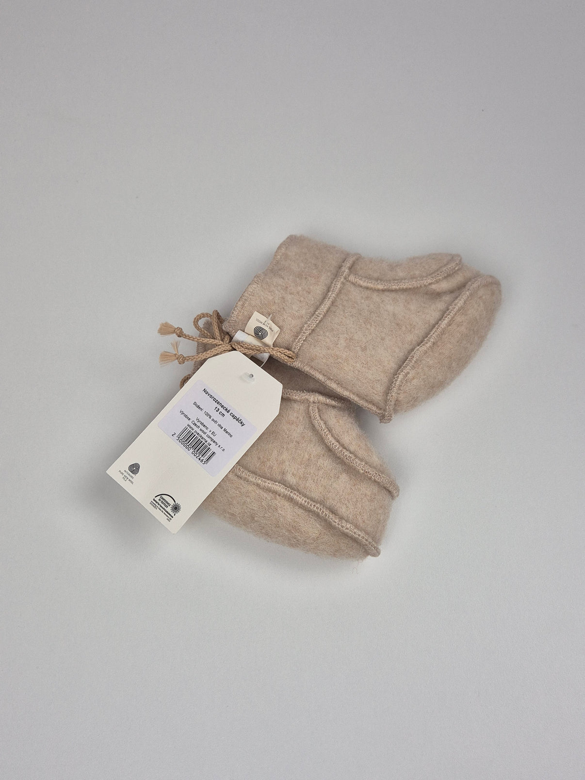 Měkoučké capáčky z merino vlny od značky Ovečkárna, ideální pro miminka v kočárku i doma. Merino krásně hřeje, je prodyšné a zároveň jemné k citlivé pokožce. Capáčky mají nadýchaný vzhled, příjemně obepnou nožičku a díky zavazování hezky drží na místě. Neutrální béžová barva se hodí pro holčičku i chlapečka. Skvělý kousek na chladnější období – udrží nožičky v teple a pohodlí.