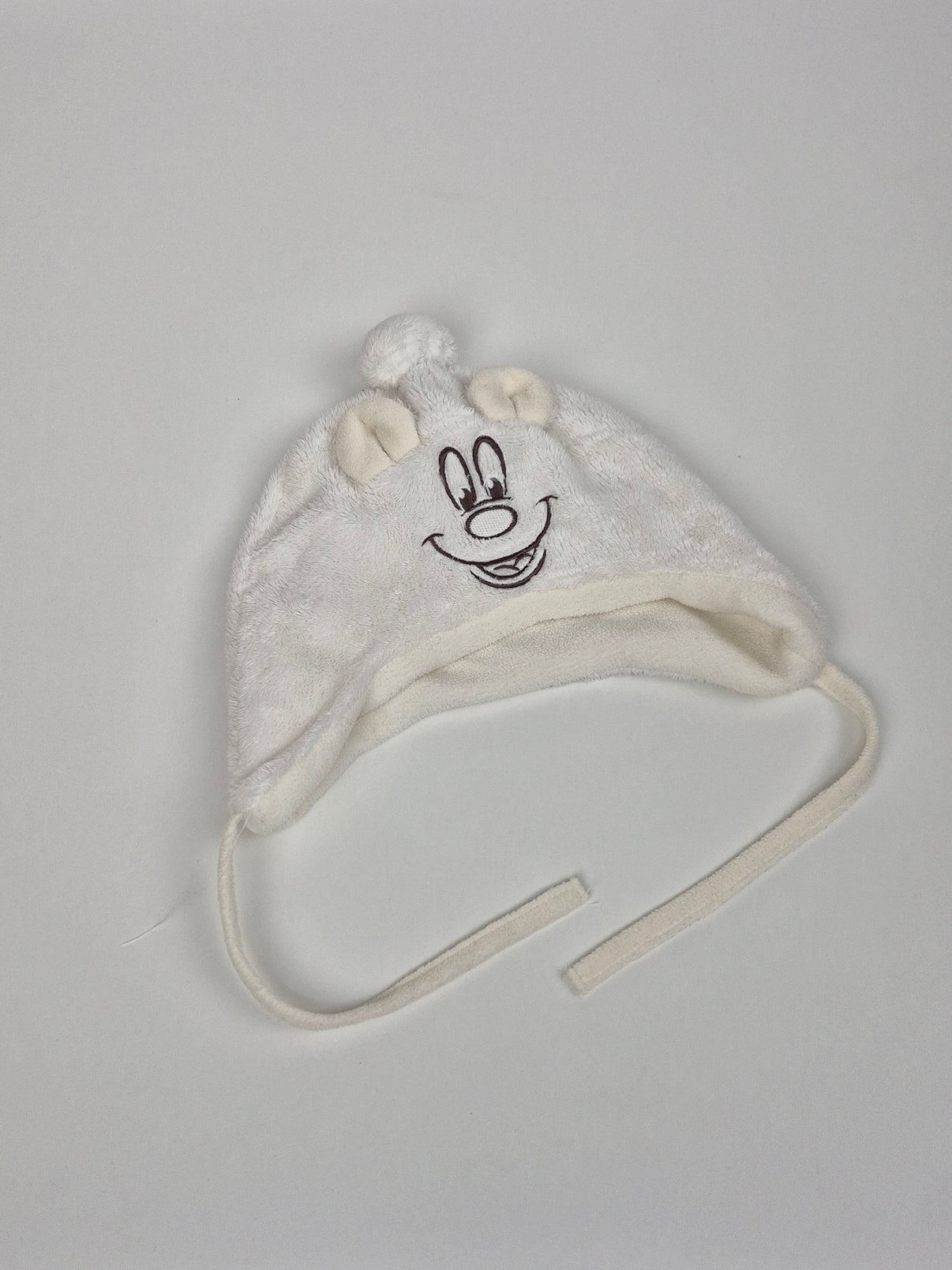 Měkoučká zimní čepice s oušky ve velikosti 80 je ideální pro chladné dny. Vyrobená z hebkého fleecového materiálu, který skvěle hřeje a je příjemný na dotek. Uvnitř je jemná podšívka pro ještě větší pohodlí. Čepice má zavazování pod bradou, takže dobře drží na hlavě, a veselý vyšitý motiv medvídka s oušky a bambulkou dodává roztomilý vzhled. 🤍