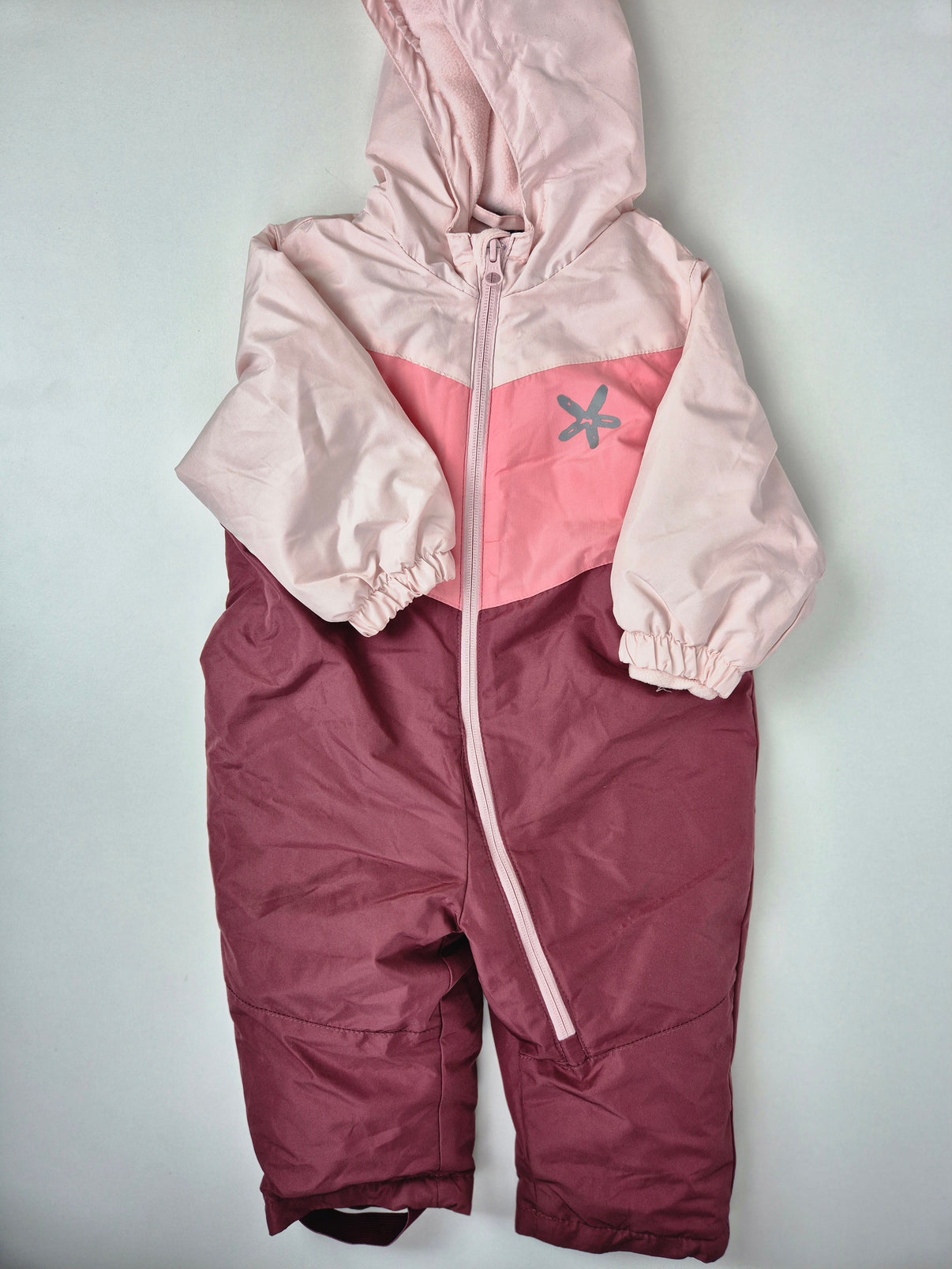 Hřejivá zimní kombinéza značky Lupilu ve velikosti 80. Kombinace světle růžové, malinové a vínové barvy působí jemně a hravě zároveň. Vnitřní fleecová podšívka zajistí teplo a pohodlí, zatímco svrchní materiál chrání před větrem i vlhkostí. Praktický zip po celé délce usnadní oblékání. Na přední straně je decentní reflexní detail pro lepší viditelnost.
