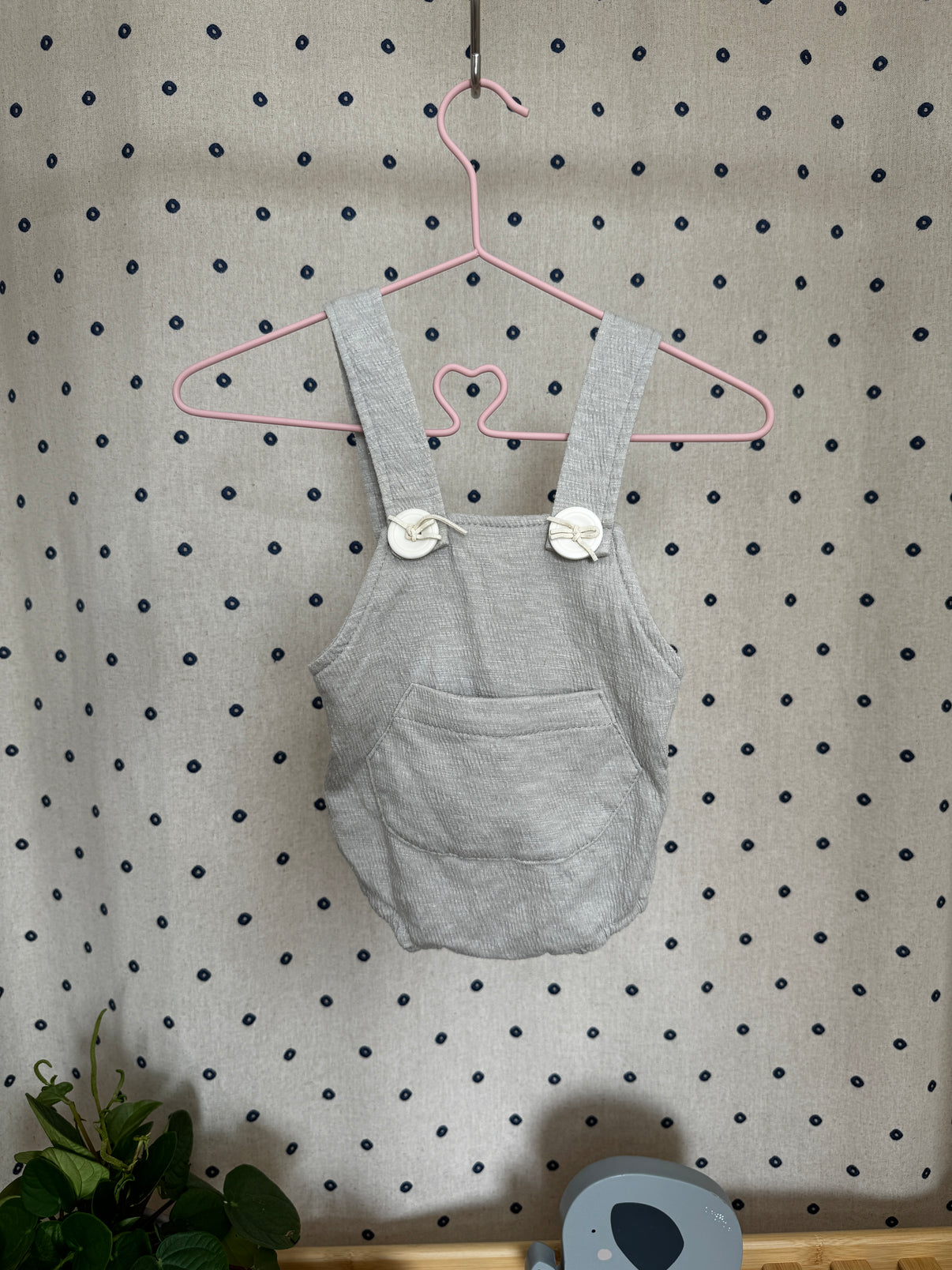 Roztomilé šedé kraťasy s laclem od značky A-lebabay, velikost 66. Tyto praktické kraťasy jsou ideální pro každodenní nošení. Pohodlný střih s nastavitelnými ramínky na knoflíky a kapsou na přední straně...