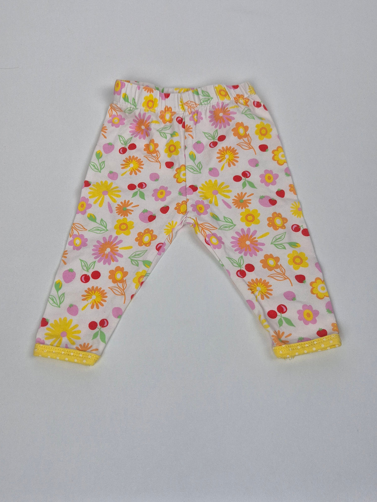 Roztomilé barevné legíny Ergee s květinovým vzorem rozzáří každý outfit! Legínky jsou vyrobené z měkké a pružné bavlny, takže jsou velmi příjemné na nošení i pro ta nejmenší miminka. Pas na gumu zajišťuje pohodlí a snadné oblékání. Spodní lem je ozdobený žlutou krajkou s puntíky, což dodává legínám hravý detail. Ideální na jaro a léto. Určeno pro holčičku.