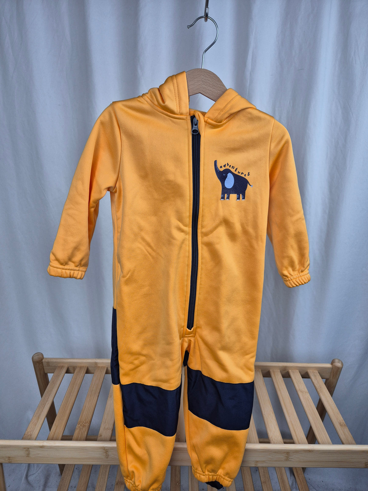 Stylová softshellová kombinéza Lupilu v zářivě žluté barvě s tmavě modrými detaily je ideální pro malé dobrodruhy do každého počasí. Větruodolný a částečně voděodolný materiál chrání při venkovních hrách, zatímco fleecová podšívka udržuje příjemné teplo. Kombinéza má kapuci, zip po celé délce a praktické zesílení na kolenou i zadní části.
