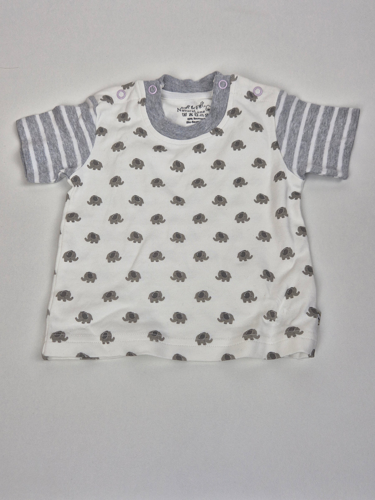 Toto krátkorukávové tričko značky Ebi&Ebi ve velikosti 68 je jemný a pohodlný kousek pro nejmenší miminko. 🐘🤍