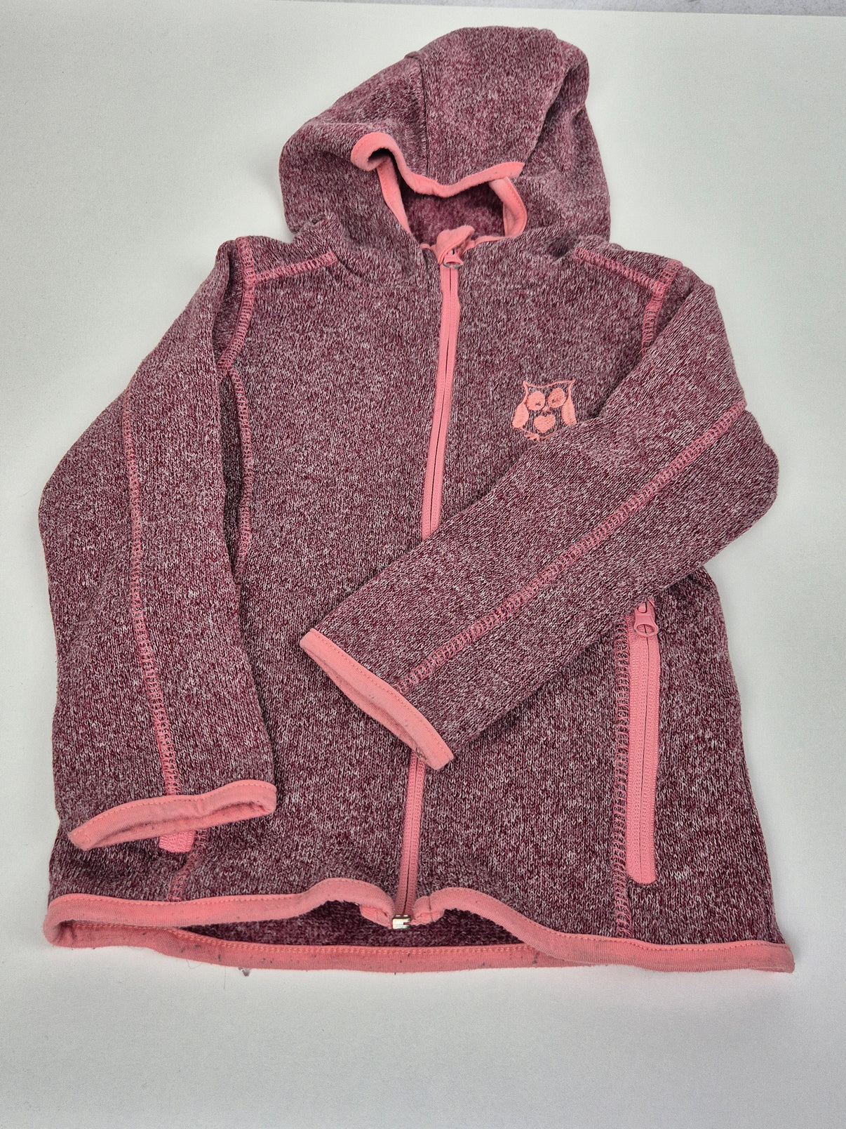 Teplá dívčí mikina Kiki&Koko ve velikosti 98 v malinově růžové barvě s kapucí a zapínáním na zip. Příjemný fleecový úplet je z vnější strany melírovaný, uvnitř hebký a hřejivý. Lemování v růžové barvě a malá výšivka sovičky dodávají mikině roztomilý vzhled. Díky kapsám na zip je ideální do školky, na hřiště i na procházky.