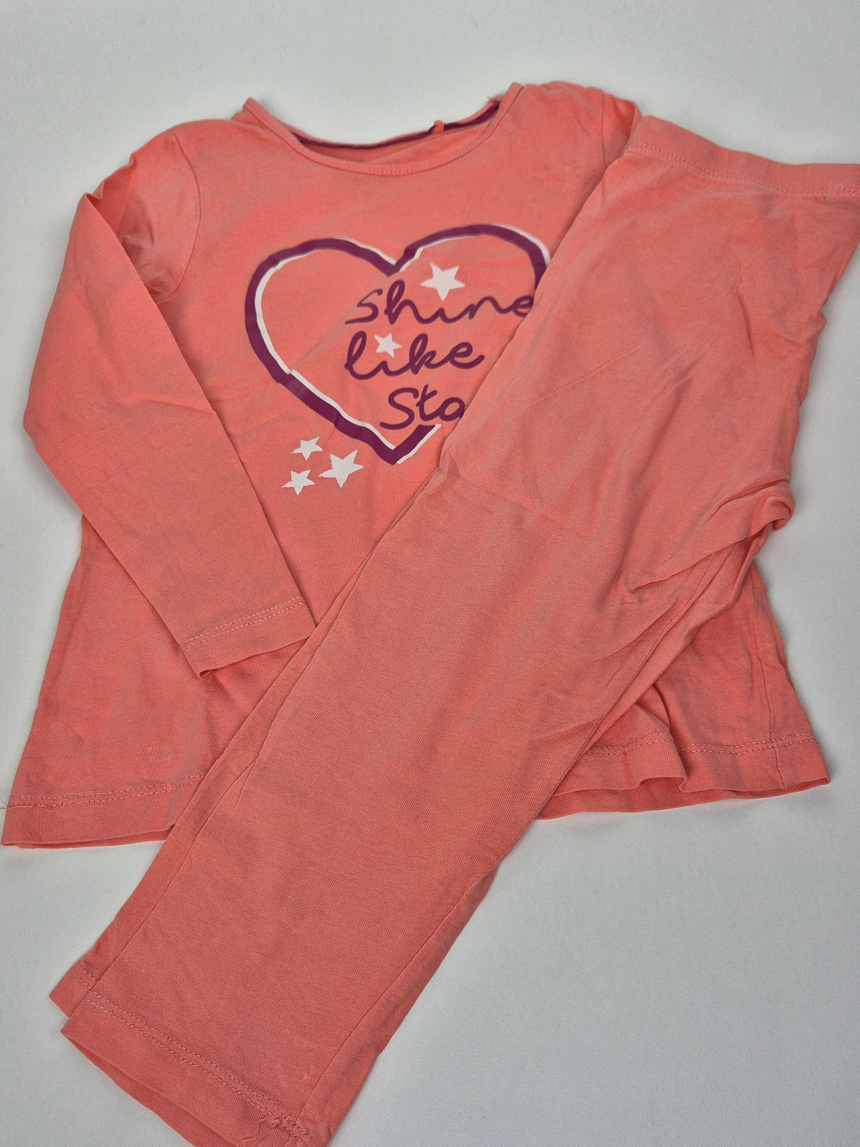 Roztomilé dívčí pyžamo Lupilu v korálově růžové barvě. Horní díl s potiskem srdce a nápisem „Shine like star“, kalhoty jednobarevné se vzdušným pohodlným střihem a pružným pasem. Vyrobeno z měkké bavlny, která je příjemná na spaní i nošení.