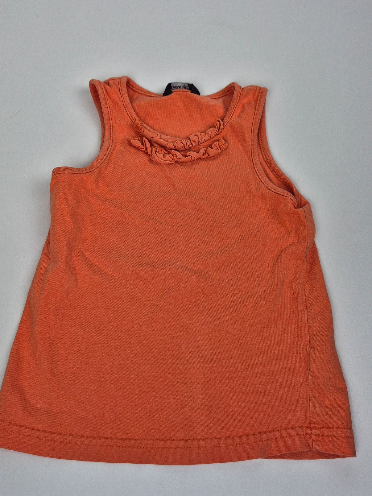 Letní tílko George v meruňkovém odstínu z lehké a prodyšné bavlny. Decentní ozdoba u výstřihu dodává jednoduchému střihu něžný vzhled. Ideální kousek pro malé slečny – na hřiště, do školky...