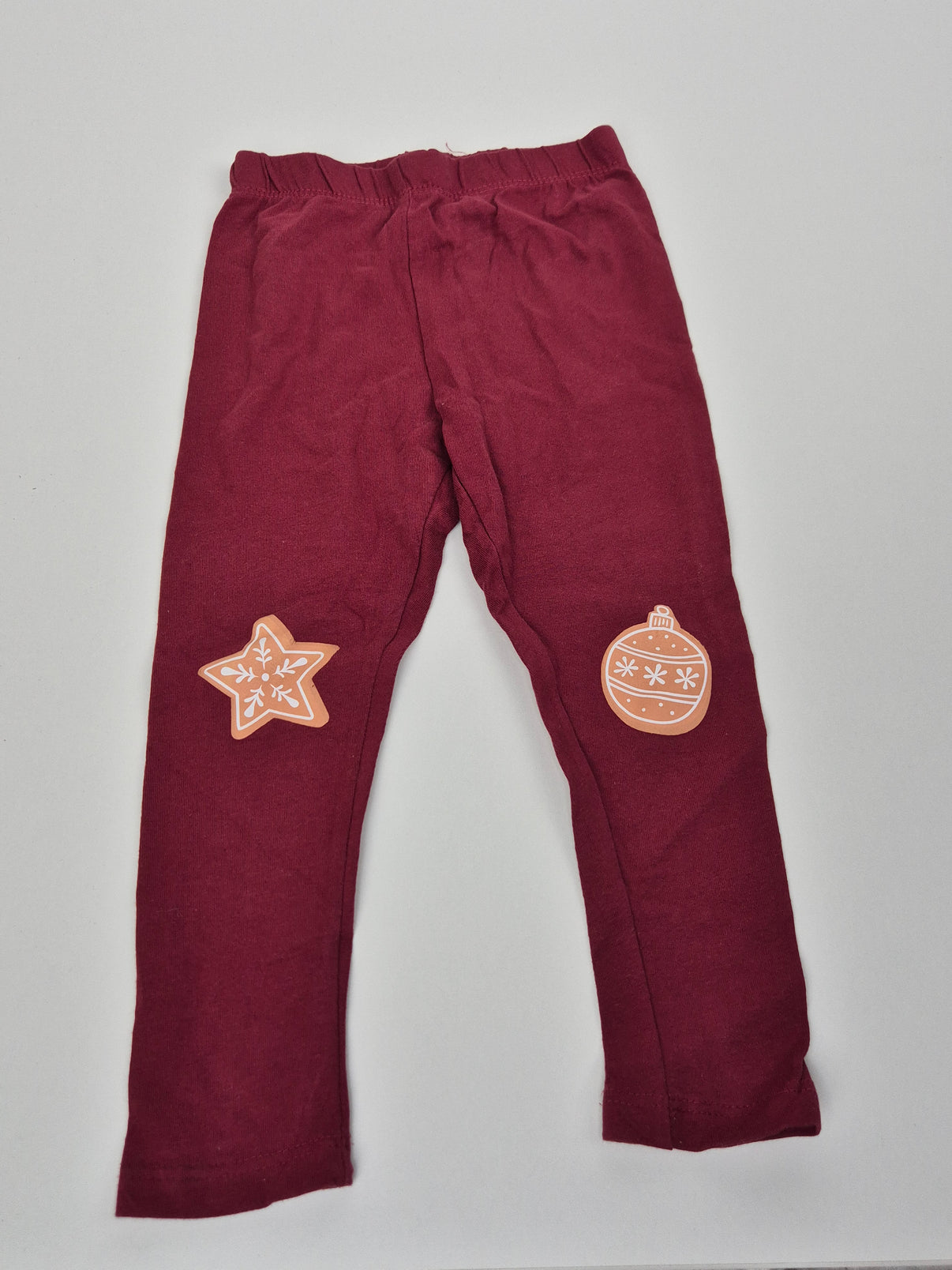 Vánoční legíny Sinsay v krásné vínové barvě s motivem perníkové hvězdy a ozdoby jsou perfektní volbou pro sváteční období. Vyrobené z měkké a pružné bavlny, takže se pohodlně nosí celý den. Díky elastickému pasu se snadno oblékají a skvěle padnou. Ideální k vánočnímu tričku nebo svetříku pro malou holčičku.