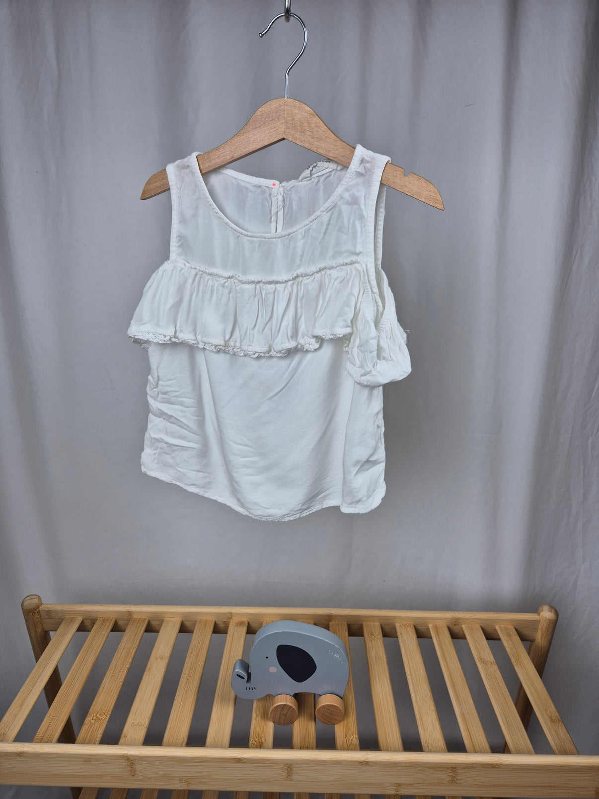Lehké bílé crop tričko z kolekce H&M si zamiluje každá malá parádnice. Díky volánkovému detailu na přední straně a netradičnímu střihu s jedním rukávkem působí hravě a zároveň elegantně. Jemně krémový odstín krásně ladí s letním outfitem, ať už k sukni nebo šortkám. Skvělý kousek na volný čas, slavnostní příležitosti nebo prázdninové výlety. Určeno pro holky, které si potrpí na styl a pohodlí.