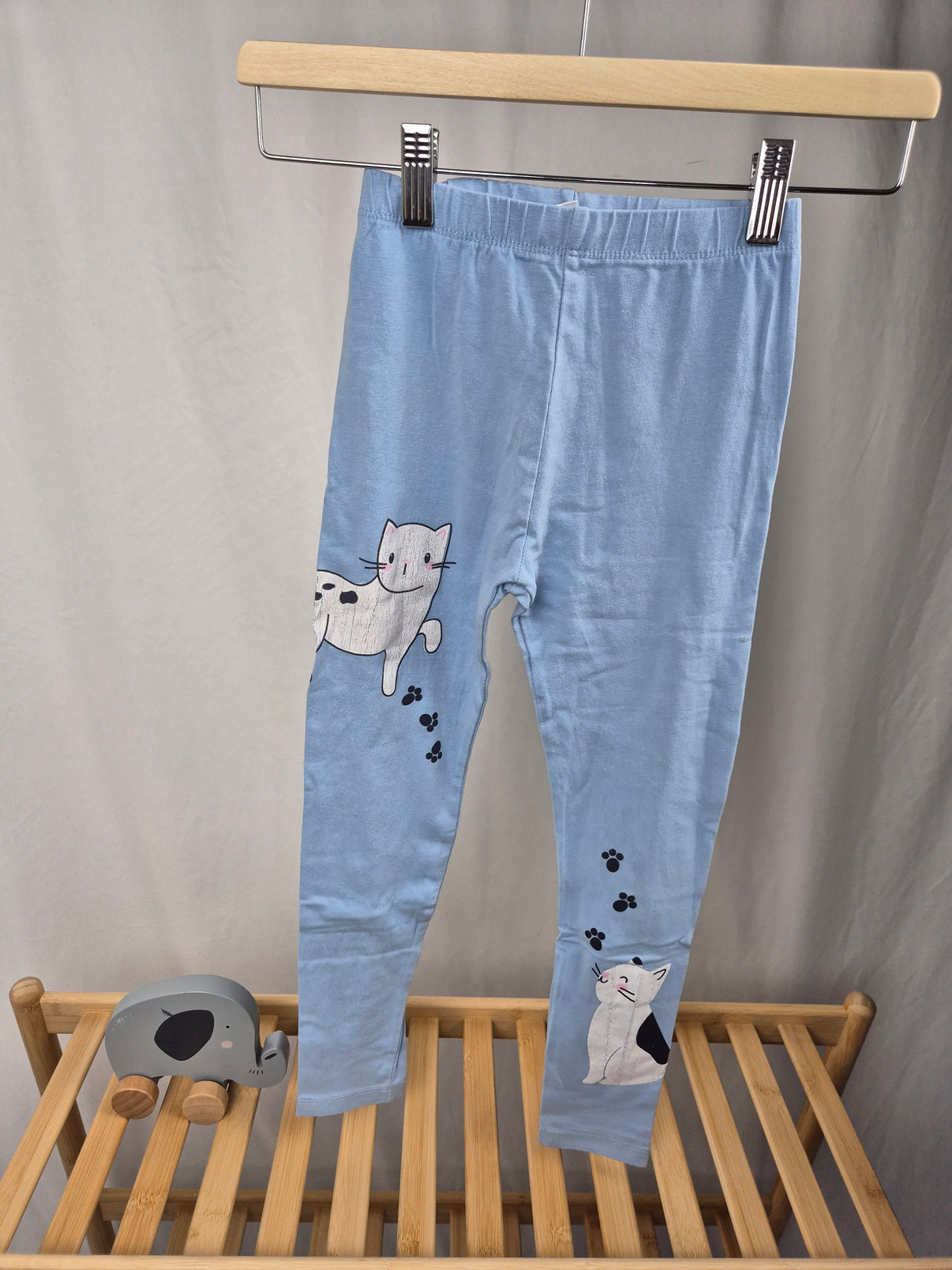 Roztomilé dívčí legíny z Pepco v jemném světle modrém odstínu potěší každou malou milovnici kočiček. Nohavice zdobí hravý potisk dvou koček a černých tlapiček, které působí jako by po legínách právě proběhly. Díky elastickému pasu a pohodlnému materiálu jsou ideální na každodenní nošení – do školky, školy i na doma. Skvělý kousek, který kombinuje pohodlí a zábavný design.