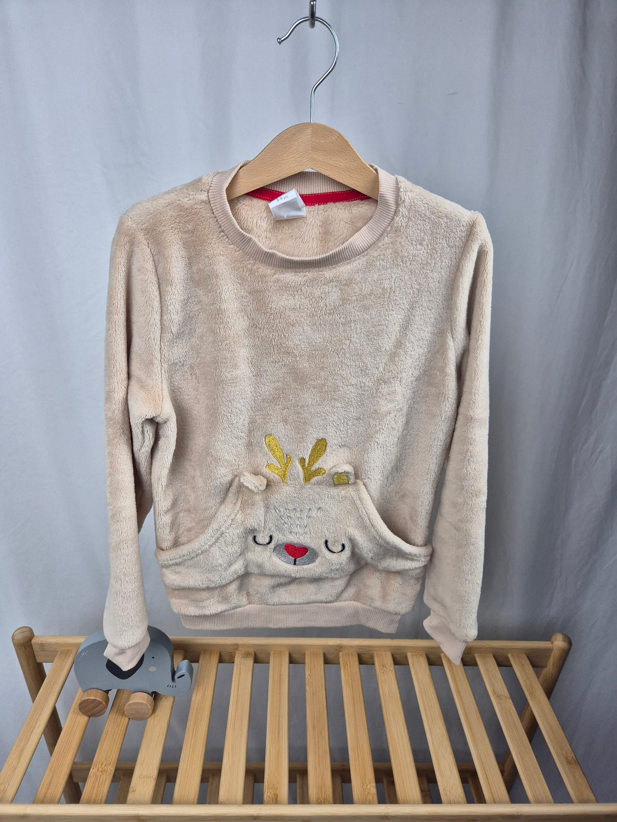 Mazlivě hebká dívčí mikina z Pepco v jemném béžovém odstínu zahřeje na těle i na duši. Přední kapsa ve tvaru spícího sobíka s 3D oušky, červeným srdíčkovým nosíkem a zlatými parůžky z ní dělá kouzelný zimní kousek plný detailů. Vnitřní strana je příjemně měkká, ideální na chladné dny. Skvělá volba na zimu do školky, školy nebo na sváteční chvíle – zaručeně vykouzlí úsměv na tváři každé malé slečně.