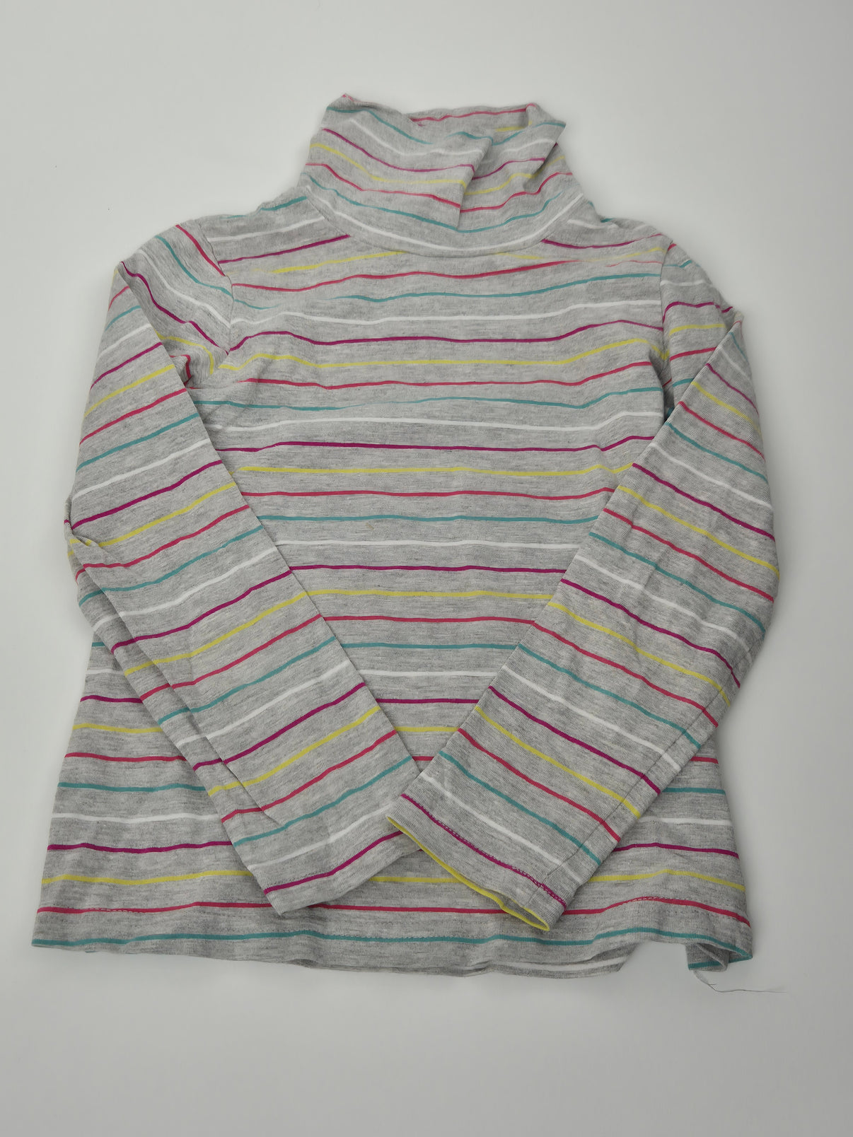 Pohodlný dětský rolák značky H&M ve světle šedém základu s veselými proužky v odstínech růžové, tyrkysové, žluté a bílé je ideální volbou na chladnější dny. Díky jemnému materiálu a přiléhavému střihu se skvěle hodí pod mikinu, svetr i bundu. Praktický kousek pro každodenní nošení do školy, školky nebo na hřiště. Vhodný pro holčičky, které milují barvy a pohodlí v jednom.