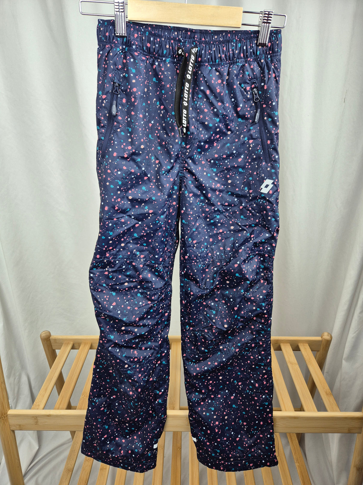 Tmavě modré šusťákové kalhoty Lotto ve velikosti 140/146 jsou skvělé do chladného a deštivého počasí. Kalhoty mají zateplenou fleecovou podšívku, takže krásně hřejí, a díky vodoodpudivému svrchnímu materiálu jsou ideální na ven – na hřiště, procházky i zimní radovánky.
