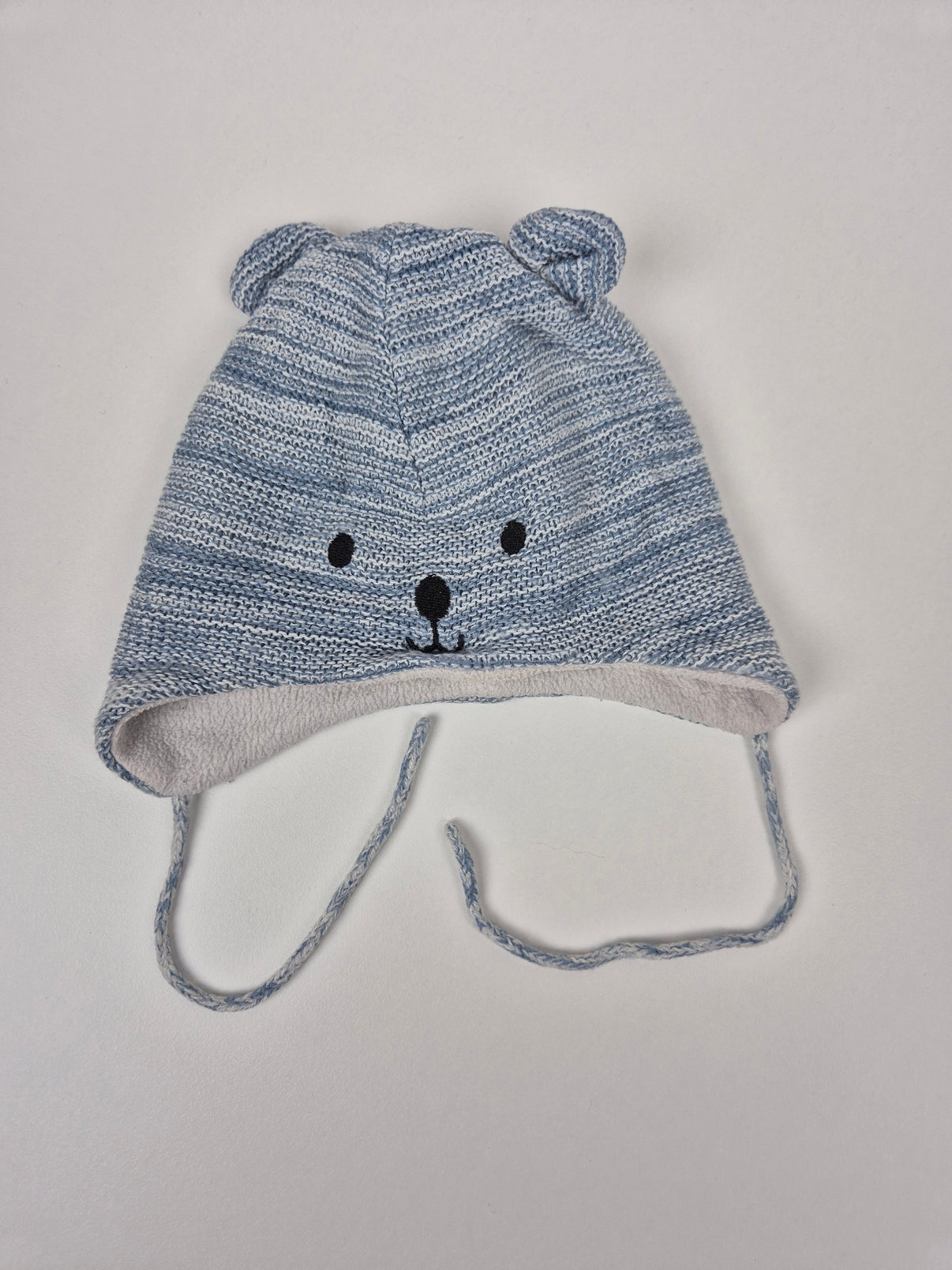 Roztomilá pletená čepice v světle modrém melíru s výšivkou medvídka a oušky. Uvnitř je měkký fleecový podklad, který krásně hřeje a je příjemný na nošení. Čepice má šňůrky na zavazování, takže dobře drží i při pohybu. Ideální na podzim a zimu pro miminko velikosti 68. Skvělý kousek pro chlapečka, který nejen zahřeje, ale i potěší svým roztomilým vzhledem.