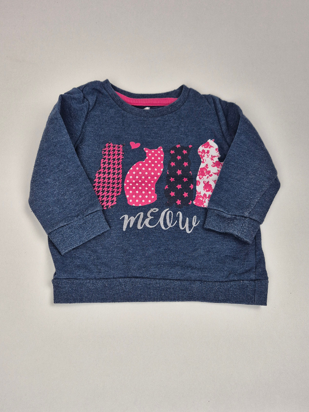 Pohodlná mikina v tmavě modré barvě s jemným melírováním, doplněná výrazným potiskem kočiček v růžových a bílo-růžových odstínech. Motiv je hravý a milý, nápis meow podtrhuje roztomilý vzhled. Uvnitř je mikina příjemně měkká, ideální na každodenní nošení. Rukávy i spodní lem jsou zakončené pružným nápletem, takže dobře drží tvar a nikam netáhne.