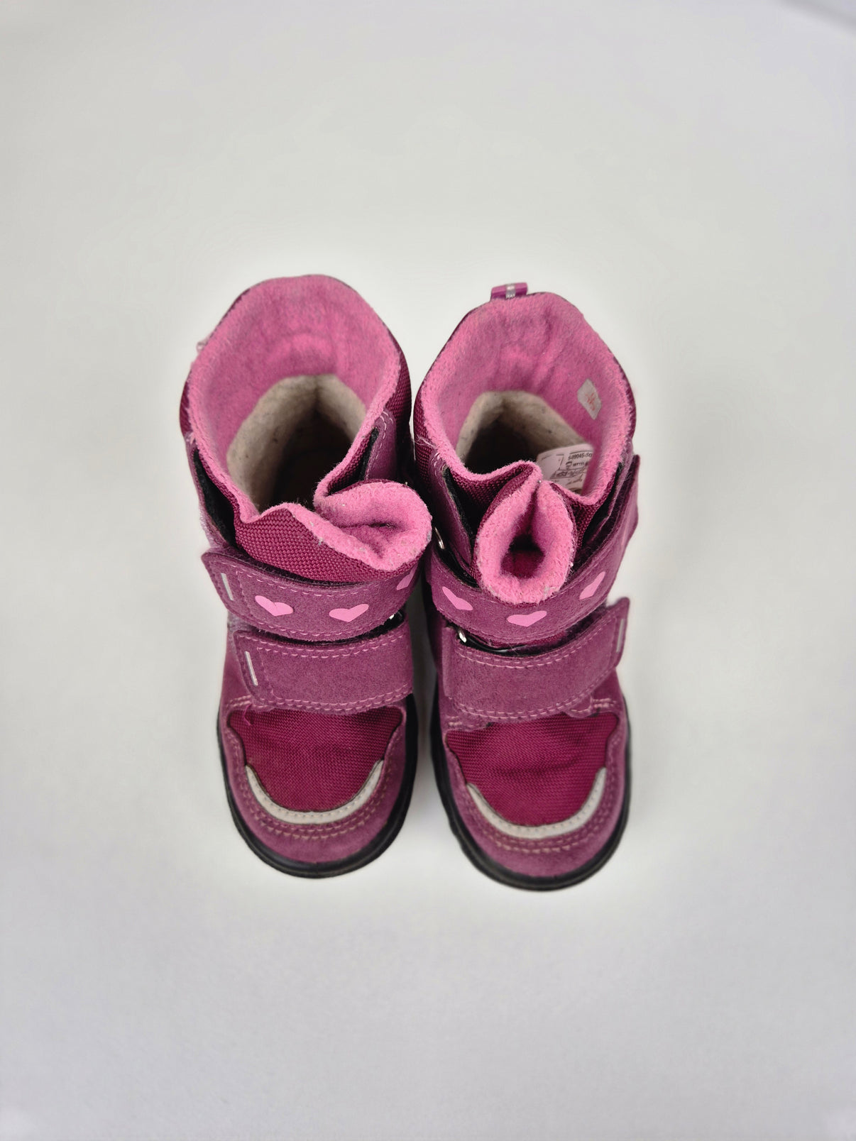 Kvalitní zimní obuv Superfit v nádherné fialovo-růžové kombinaci potěší každou malou slečnu. Botky mají voděodolnou membránu Gore-Tex, která udrží nožky v suchu i při zimních radovánkách. Uvnitř jsou měkce zateplené fleecovou podšívkou pro maximální pohodlí a teplo. Díky dvěma suchým zipům se snadno obouvají a perfektně přizpůsobí noze. Reflexní detaily zvyšují viditelnost, zatímco srdíčkové motivy dodávají botám roztomilý vzhled.