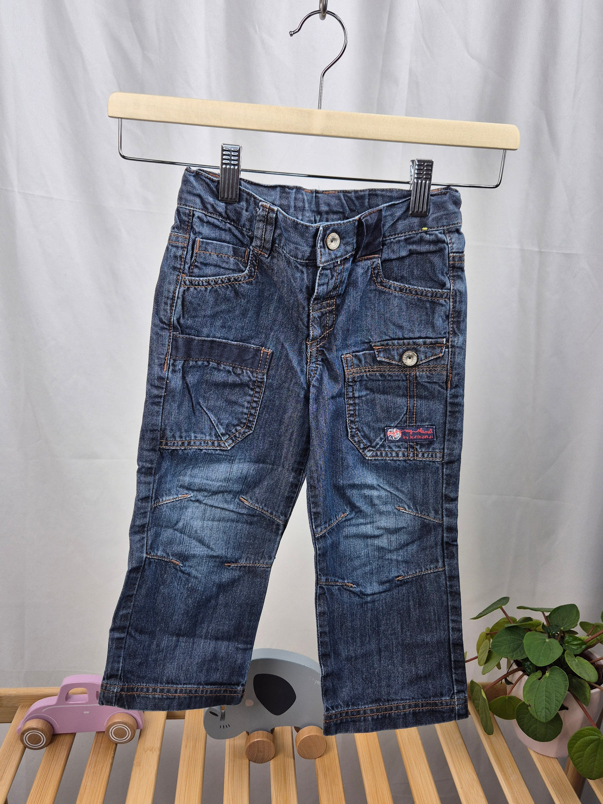 Stylové chlapecké džíny od značky Kid Kanai v tmavě modrém denim provedení s lehkým vyšisováním. Praktický střih s více kapsami, včetně bočních s klopou, dodává kalhotám moderní a ležérní vzhled. Zapínání na knoflík a zip zajistí snadné oblékání, zatímco pevný, ale pohodlný materiál je ideální na každodenní dobrodružství. Skvělé džíny na hřiště, do školky i na volný čas!
