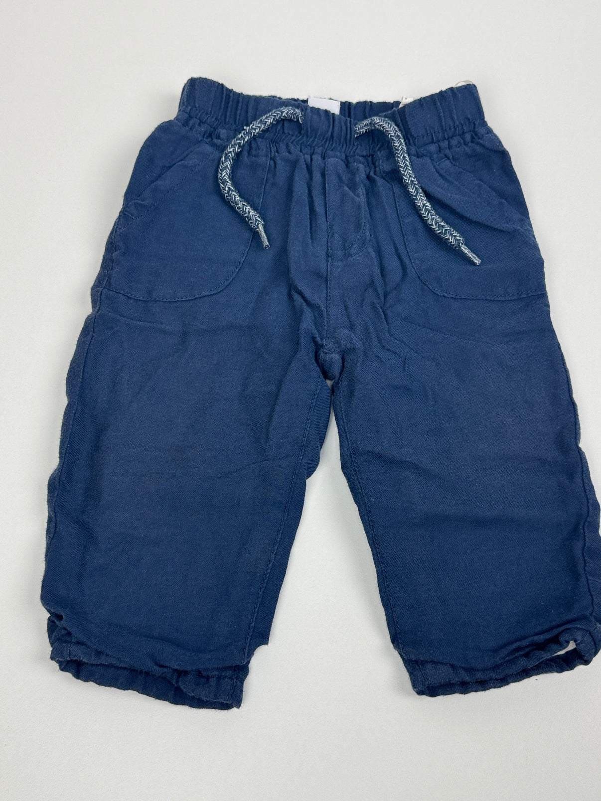 Pohodlné kalhoty značky Dopodopo v tmavě modré barvě. Kalhoty mají elastický pas se šňůrkou na stažení, dvě prostorné kapsy vpředu a volnější střih pro maximální pohodlí při pohybu. Měkčí bavlněný materiál je příjemný na dotek a vhodný pro každodenní nošení – do školky, na hřiště i doma.