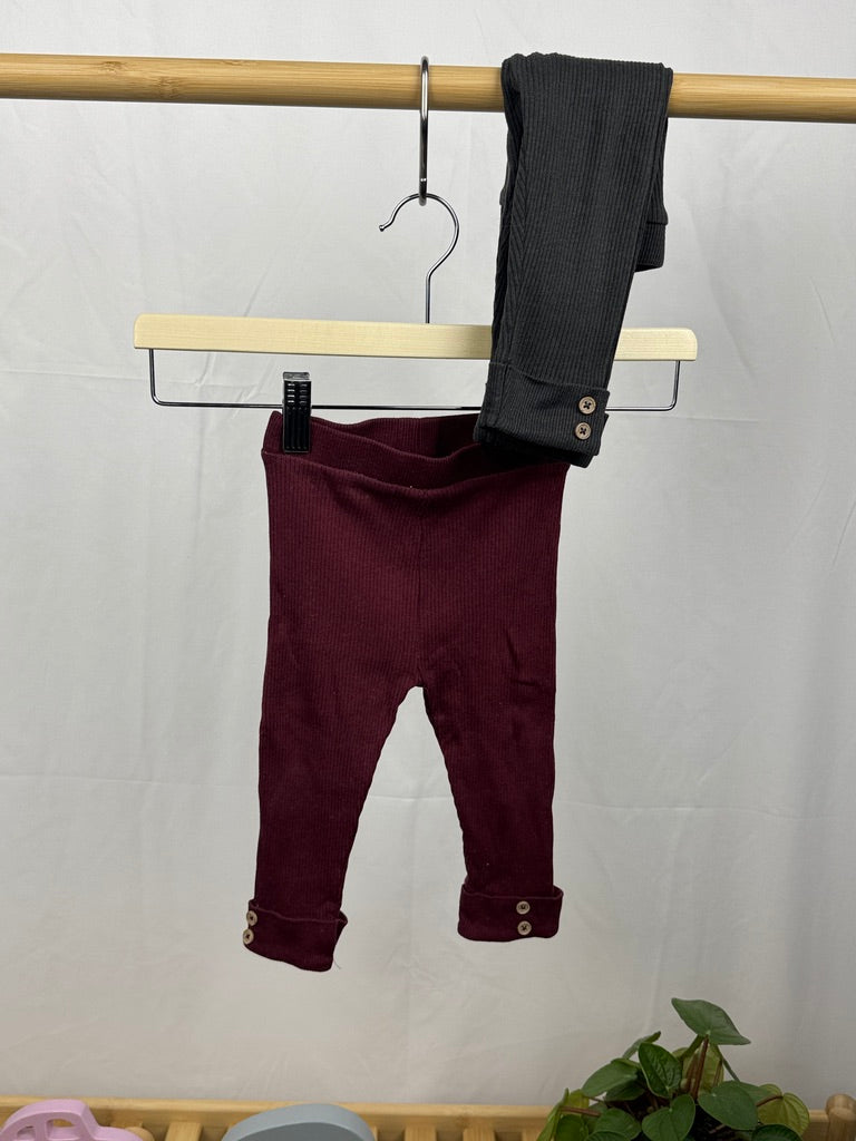 Sada dvou dětských žebrovaných legín v odstínech vínové a tmavě šedé je ideální volbou pro každodenní pohodlí i styl. Vyrobené z měkkého a pružného materiálu, který poskytuje maximální komfort při pohybu a je šetrný k citlivé dětské pokožce. Žebrovaná textura dodává legínám moderní vzhled, zatímco dekorativní dřevěné knoflíčky na nohavicích přidávají jemný detail. Elastický pas zajistí, že legíny perfektně sedí a nekloužou dolů. Skvělá volba pro domácí pohodu, procházky nebo jako základ pro vrstvení oblečení.