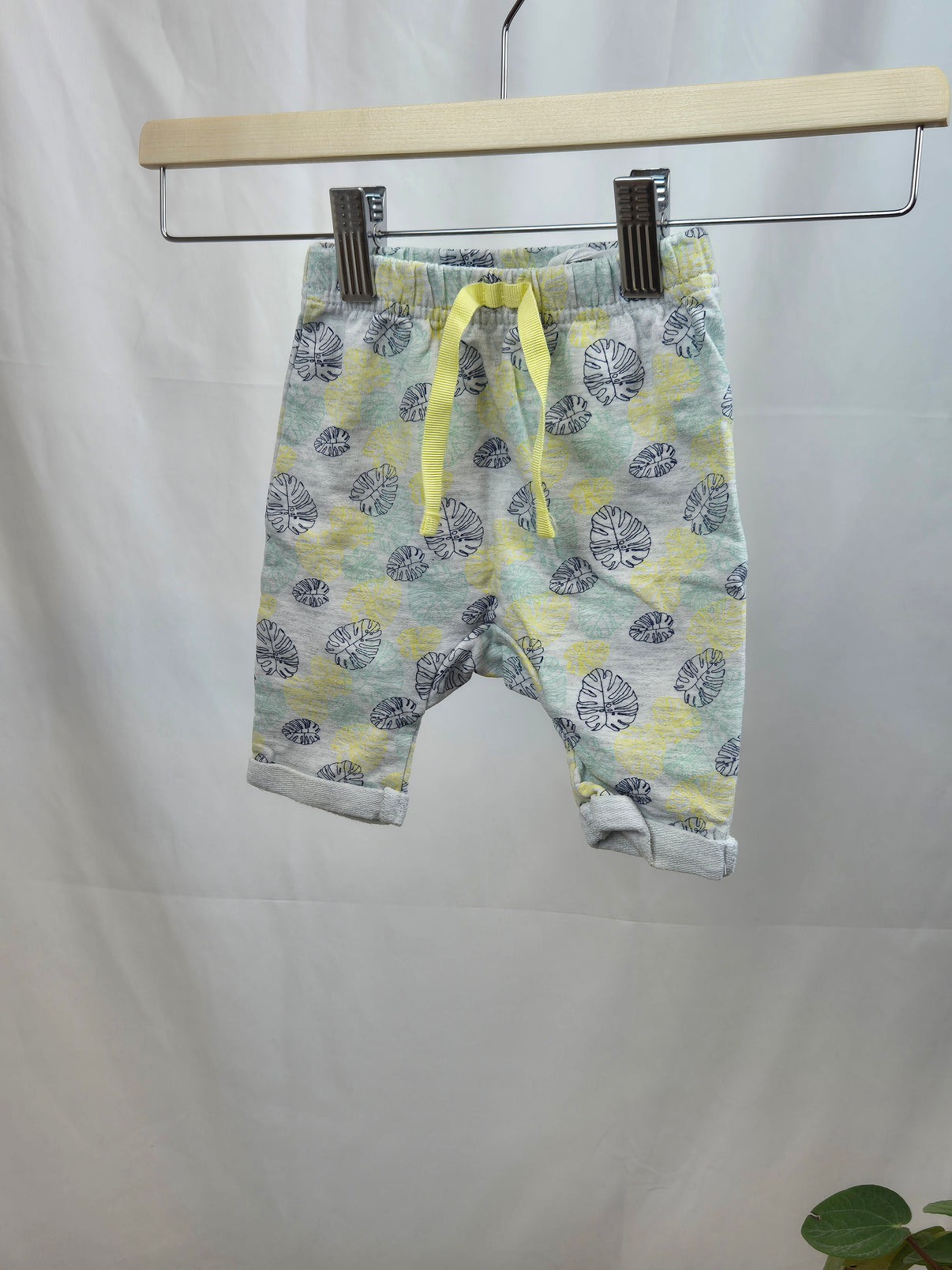 Lehké a pohodlné tepláčky značky Ergee v jemně šedém odstínu s potiskem listů monstera v černo-bílé a žluté barvě jsou ideální volbou pro nejmenší. Díky elastickému pasu se stahovací šňůrkou...