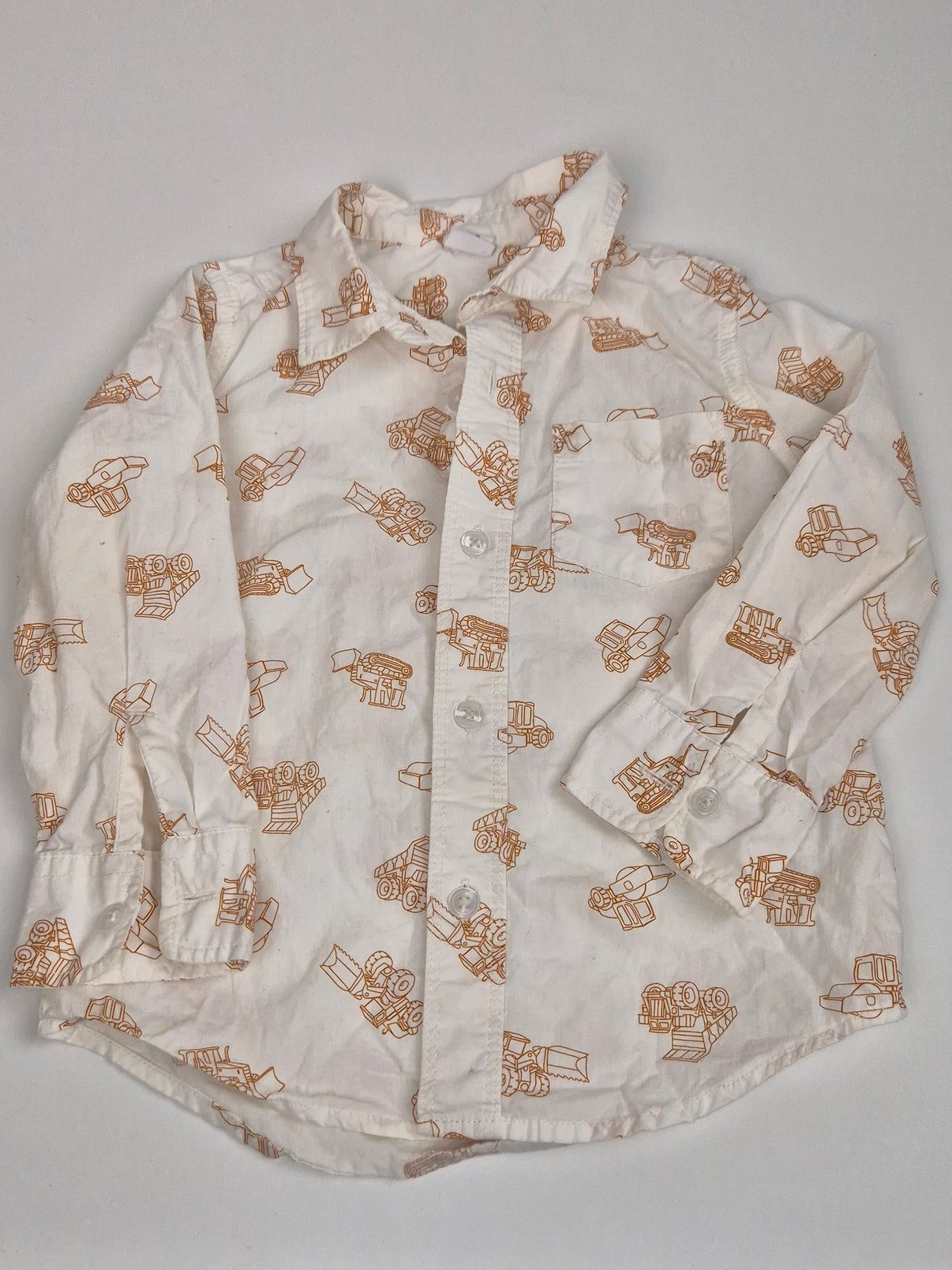 Lehká bavlněná košile GAP v bílé barvě s potiskem pracovních autíček. Pohodlný materiál a praktický střih s dlouhým rukávem z ní dělají skvělý kousek pro malé kluky, kteří milují stroje a dobrodružství. Perfektní volba na běžné nošení i slavnostní chvíle.